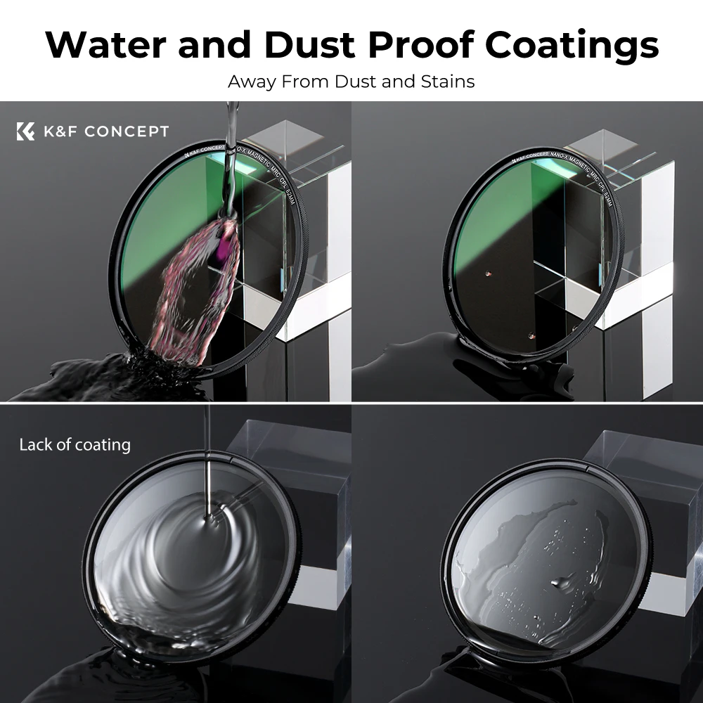 All the filter are made of Germany optical glass, high quality in light transmitting and transparency, no ghost and flares. provide you a perfect photographing experience.28 HD coats enable this filter kit to be scratch-resistant, water and oil proof, dust and mildew free.