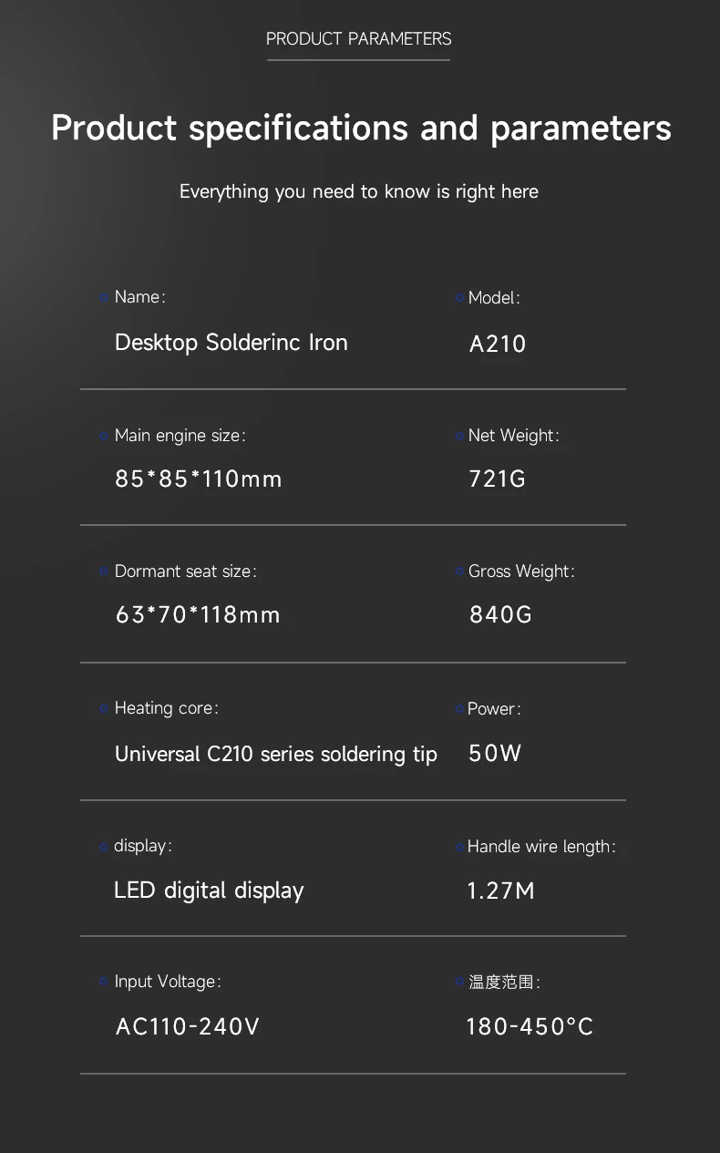 MECHANIC A210 Desktop Soldering Iron Intelligent LED Large Display C210 Heating