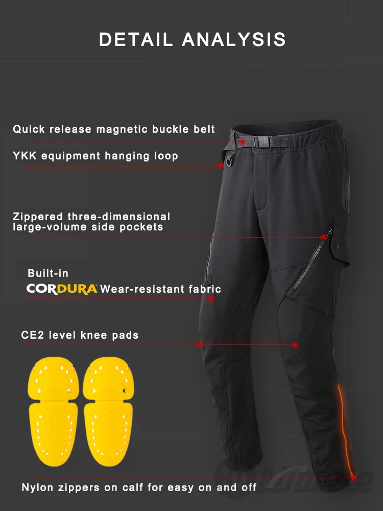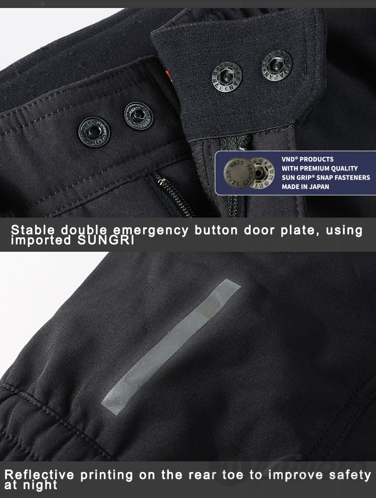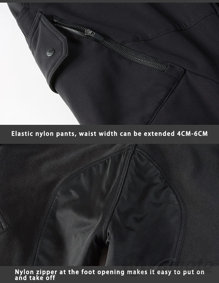 CE2 knee pads& hip protection /Calf anti-scalding reinforced nylon /Nylon calf zipper/Double thickness at the hips /Windproof and waterproof fabric /Back foot reflective print /Comfortable stretch foot mouth