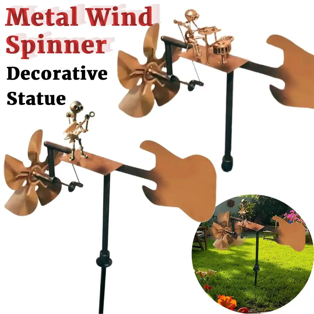 Metal Wind Spinner Handmade Guitar/Drummer Windmill Wind-Powered Guitar Sculptur