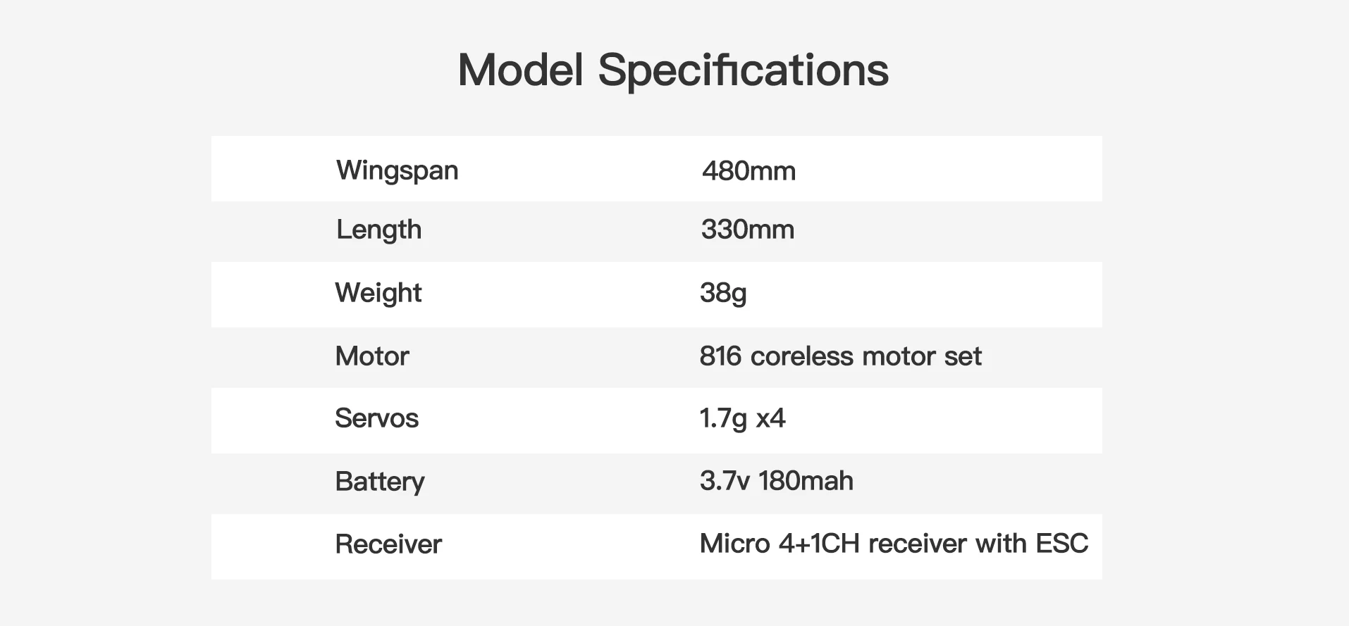Suggested Receiver:Micro 4+1CH receiver with ESC