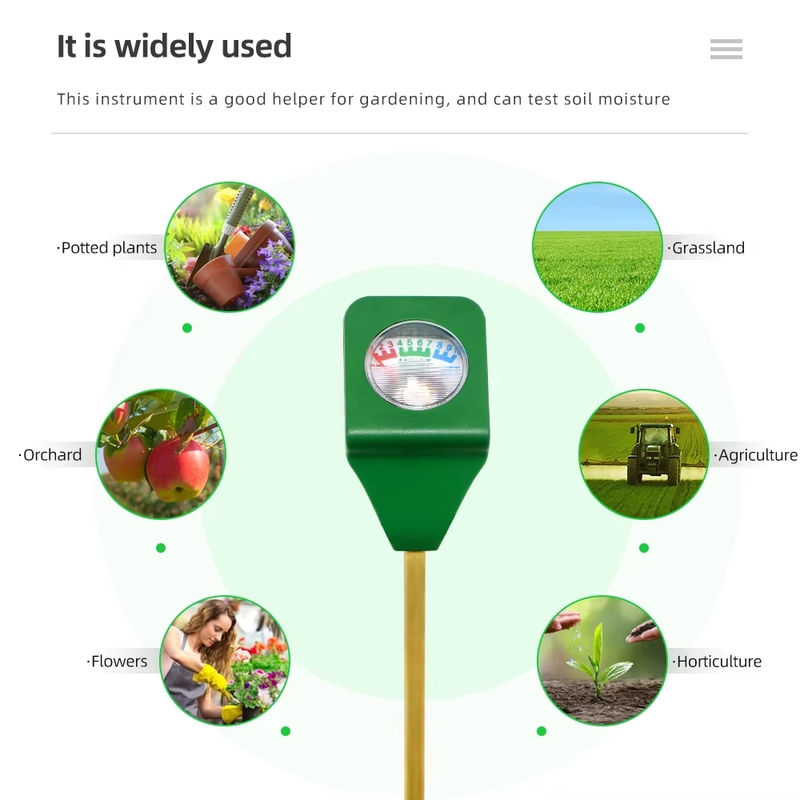 1.Perfect tool to test the soil conditions ( Moisture/Light/PH) of fruits, flowers, vegetables, shrubs, etc.
