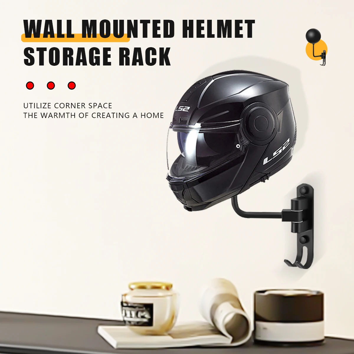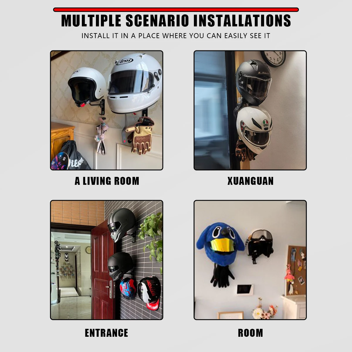 [Wide Application] This motorcycle helmet rack can store motorcycle helmets, bicycle helmets, baseball helmets, soccer helmets and hats, etc. Suitable for installation in homes, garages, motorcycle stores, offices, etc.