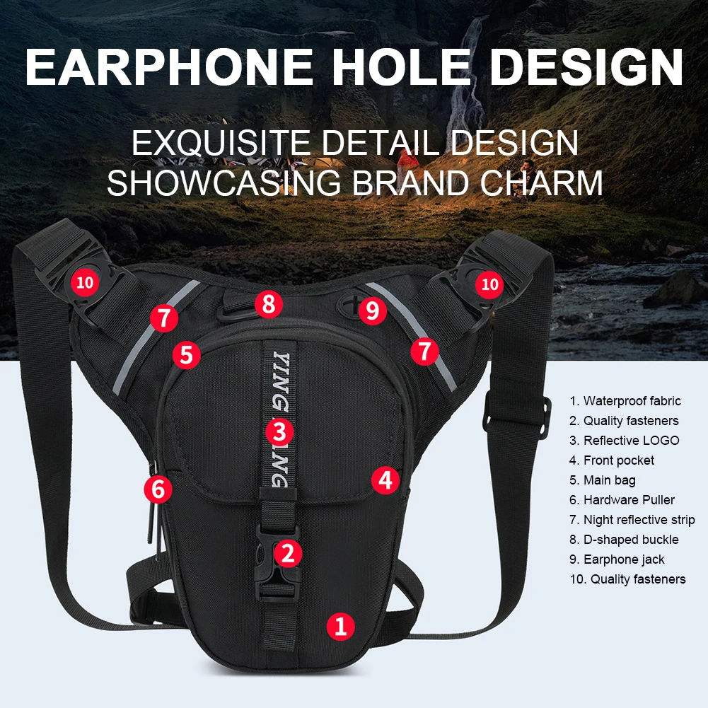 5. Convenient Earphone Port: Designed with an earphone outlet, this motorcycle thigh bag makes it easy to enjoy music on the go. Additionally, the high-visibility reflective strips enhance safety by alerting drivers and pedestrians during nighttime cycling or running.
