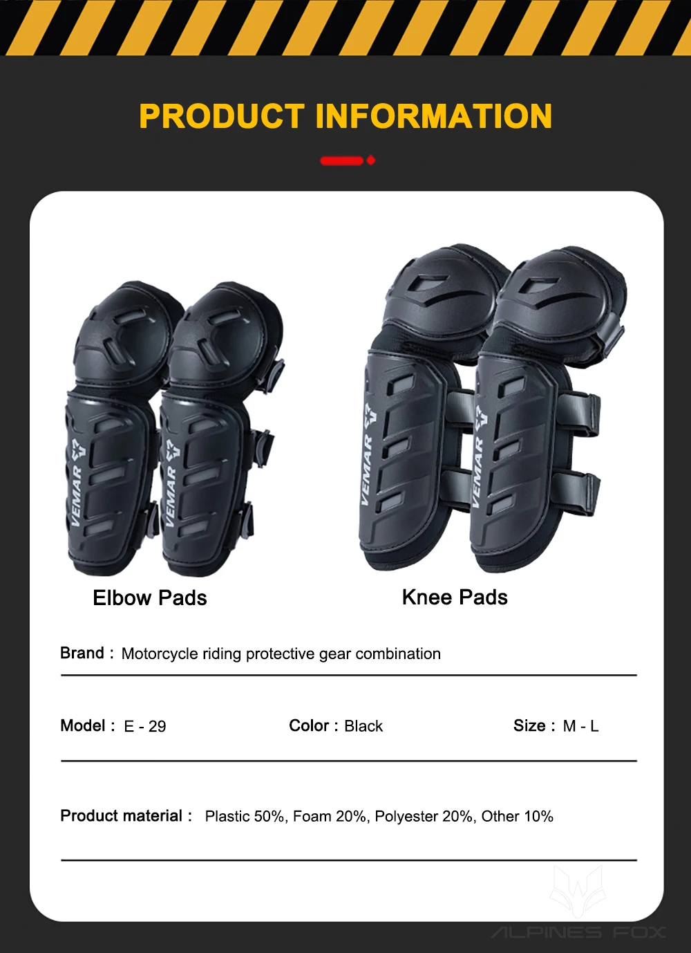 VEMAR New Elbow Protector Motorcycle Knee Pads Set Motocross Knee Guard Protective Gear Motocross Elbow Pads+Knee Pads 4Pcs/set