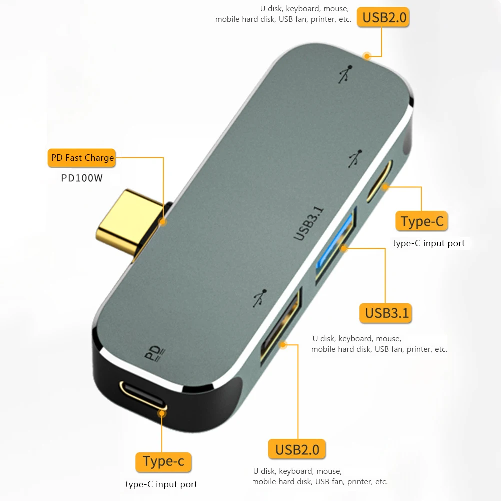 Multi-Function 6 in 1 Type-C Hub 3.55Mm PD100W USB3.0/USB2.0/USB3.1 HDMI- USB Ex