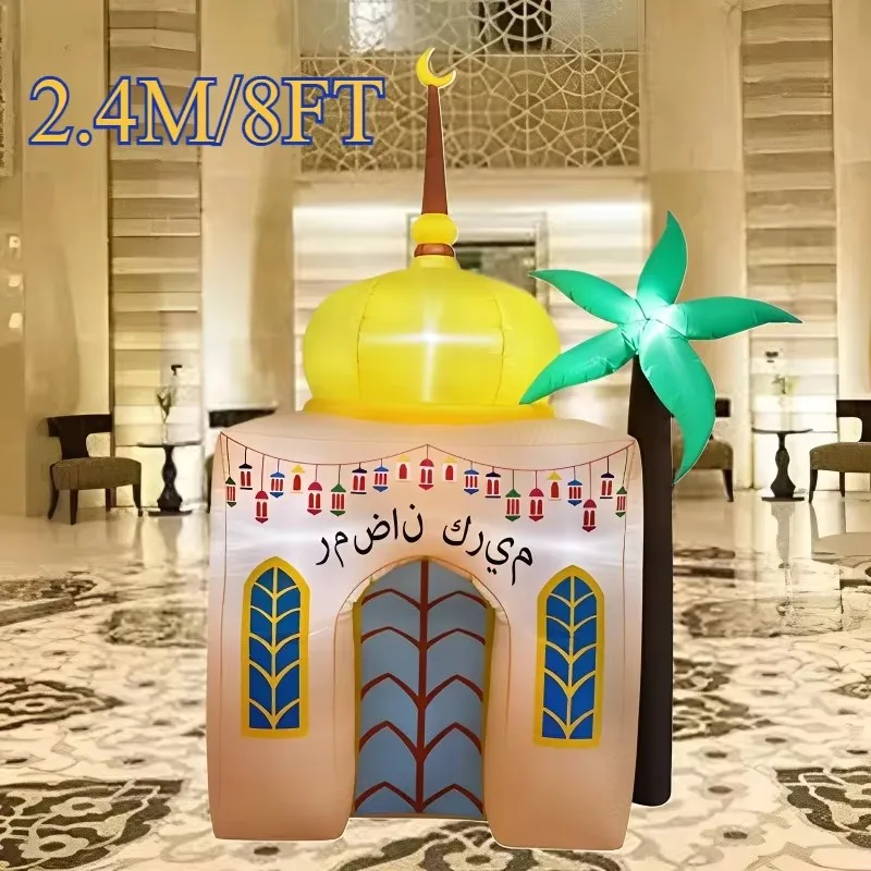 Muslim Islamic Ramadan 2.4M/8FT Inflatable Toys Castle with Coconut Tree LED Lig