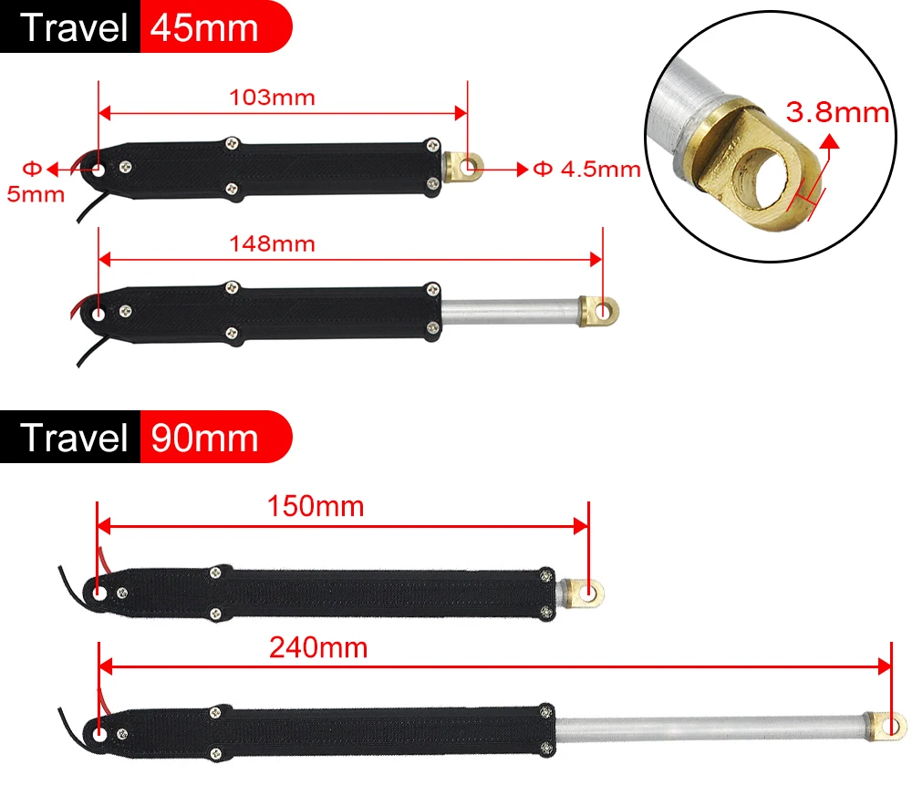 N20 Electric Push Rod Simulation Cylinder 45/90Mm Travel Metal Pushrod for RC Ex