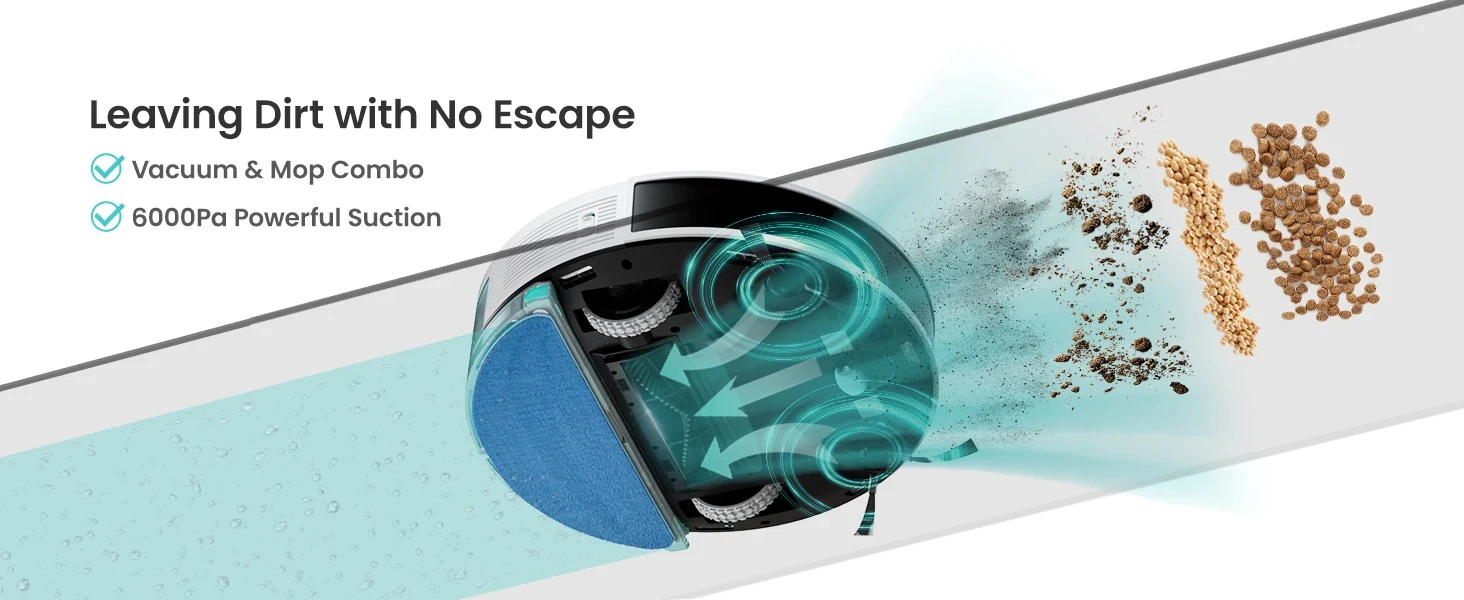 N3 Robot Vacuum Cleaner with Mop,6000Pa,Dtof Laser Navigation, Sonic Vibration W