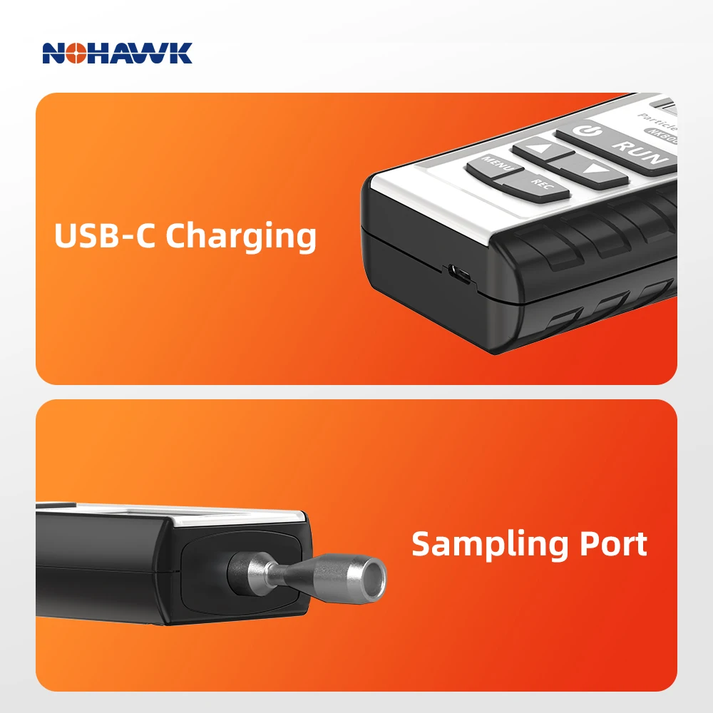 Nohawk New Dust Particle Counter PM2.5 PM10 Detector Air Pollution Detector with 2.4in LCD Display For 1000-Class Clean Room