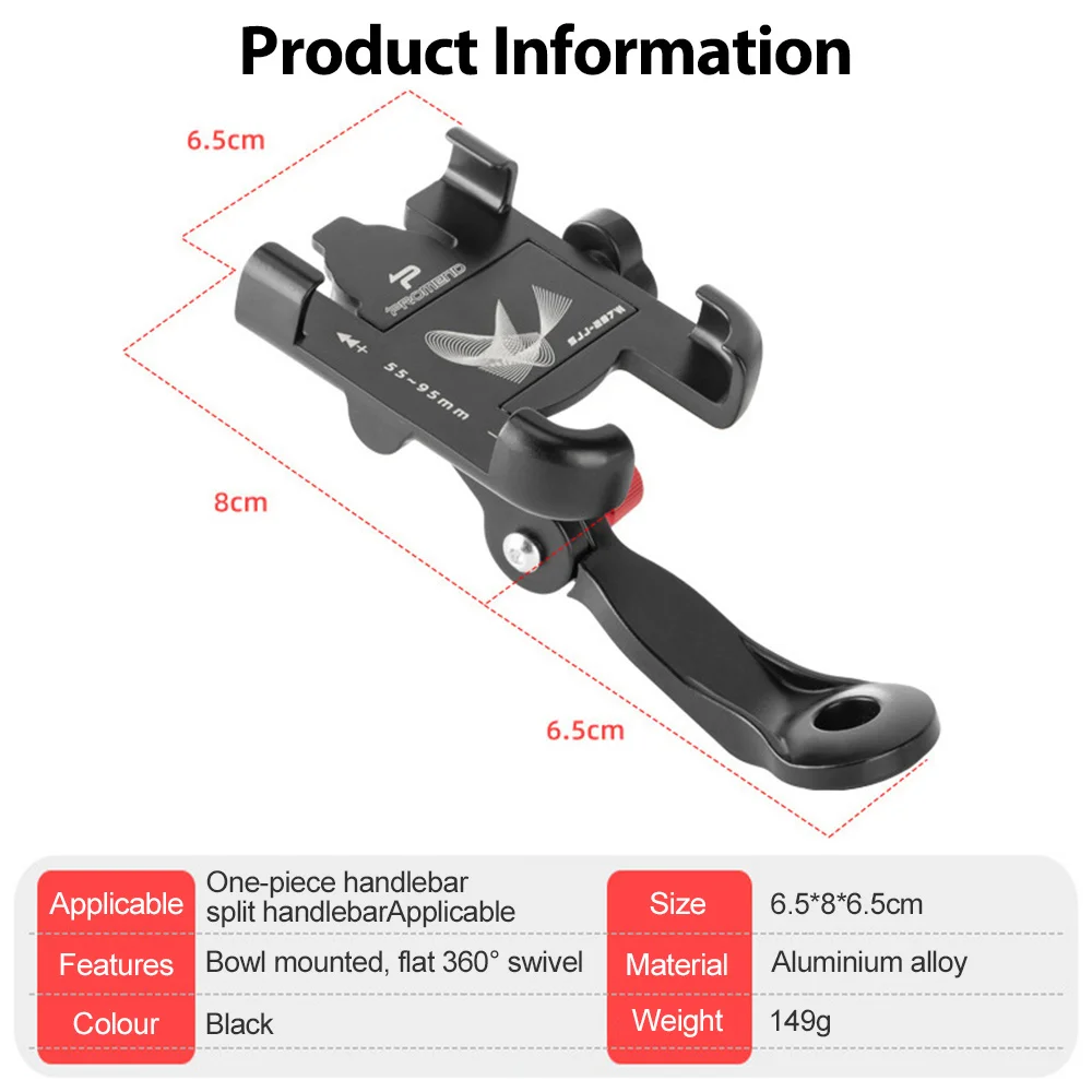 Aluminum Alloy Material :Constructed from durable aluminum alloy, this bicycle phone holder ensures long-lasting performance and resistance to wear and tear.
