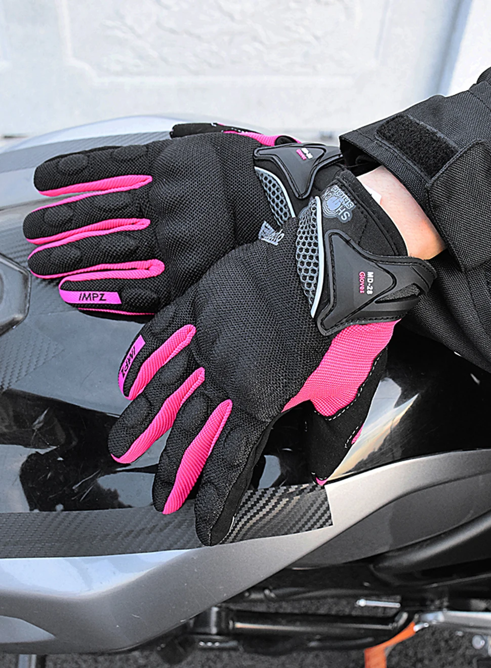 Available in bold pink and black, these gloves add a touch of style to your racing gear.