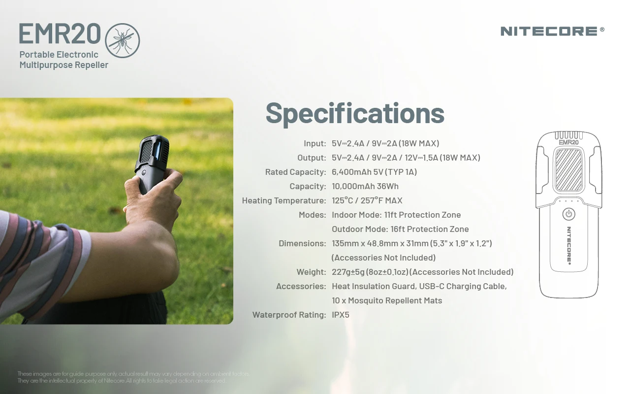 NITECORE EMR20 Outdoor Camping Portable Mosquito Repellent Electric Drive Heatin