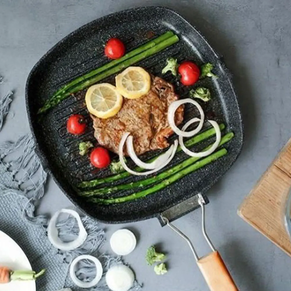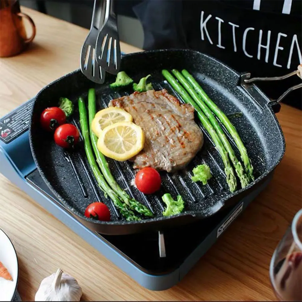 2. Efficient Cooking: This steak pan distributes heat evenly, ensuring that food is cooked uniformly, achieving the best cooking results. Whether you're searing a steak or grilling vegetables, it delivers a safe and aromatic cooking experience.