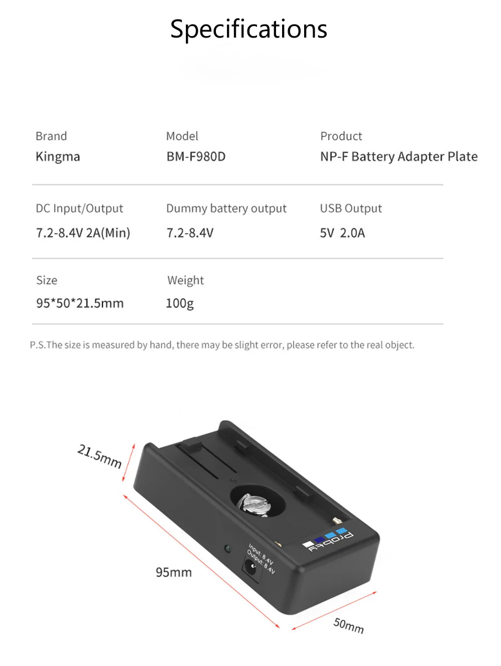 NP-F970 F750 F Battery Plate Holder Adapter W NP-FW50 Dummy Battery Coupler for