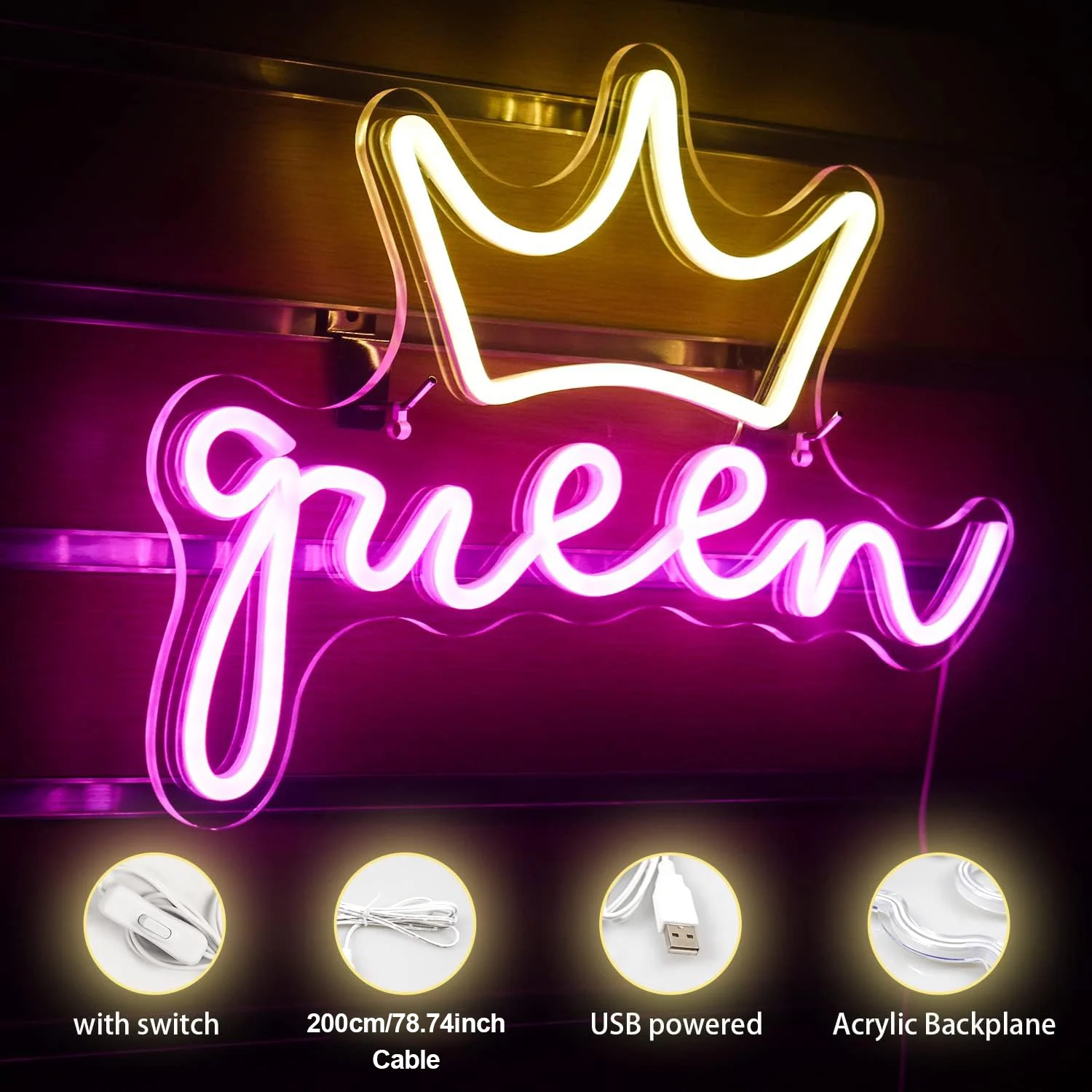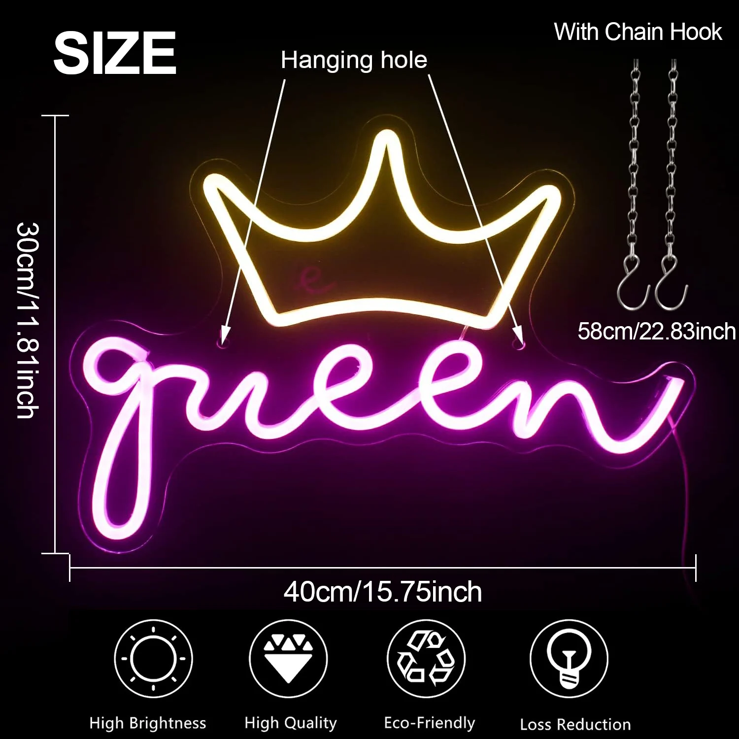 *LED SIGN NEON LIGHTS, USB POWERED- Large enough size of the neon led sign is 40x20cm/15.75x7.87inch. The neon wall sign has 2 holes and a 58cm-long metal chain. The neon light can be hung on the wall or window or placed on the nightstand, table, desk, shelf, or anywhere you need it. These neon signs use a USB power supply (can be lit by the adapter, power bank, or computer), comes with an on/off switch, and supports smart socket control.