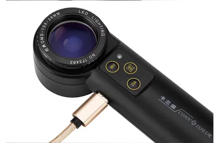 Antique Gem Diamond luxuries Identification Magnifying Glass with Different Color Light White LED and UV Light 10X/20X Handheld Lighted HD Jewelry Loupe