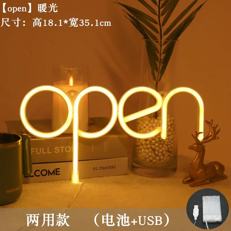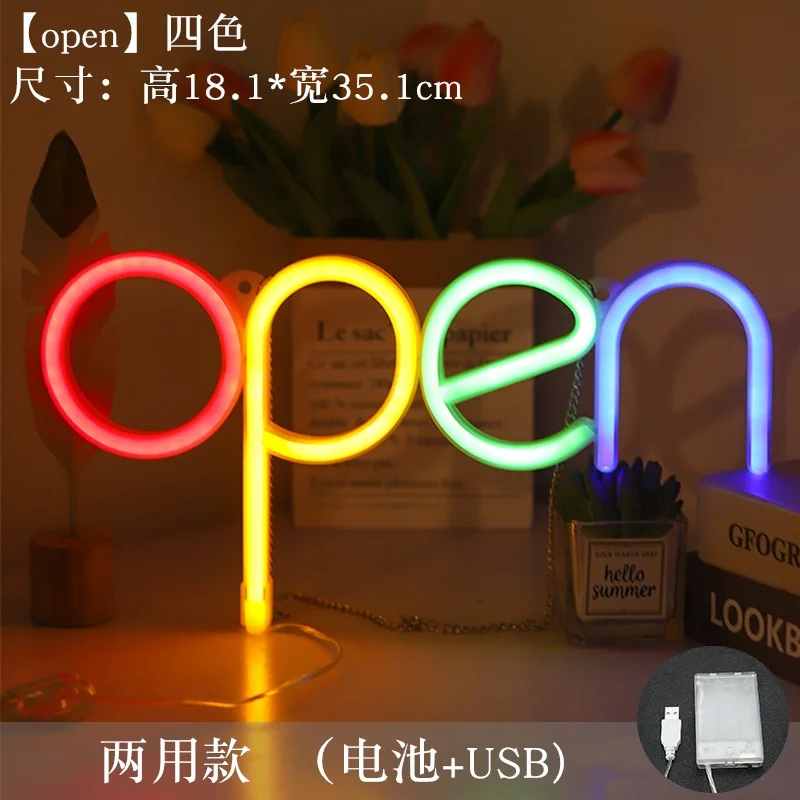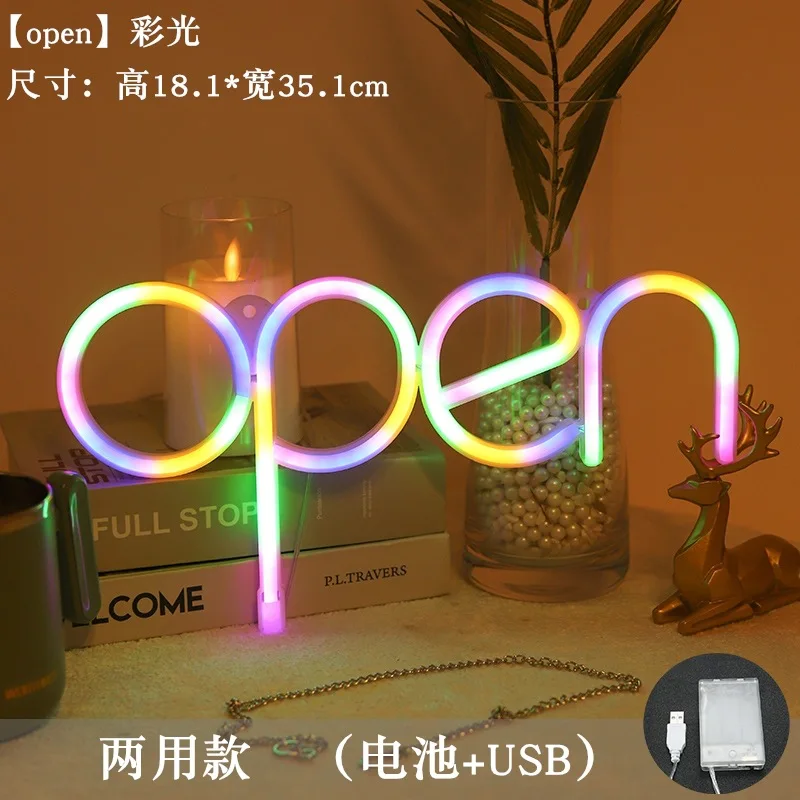 Open Neon Sign LED Neon Signs Night Light Colorful Lighted Decor Glowing Letter