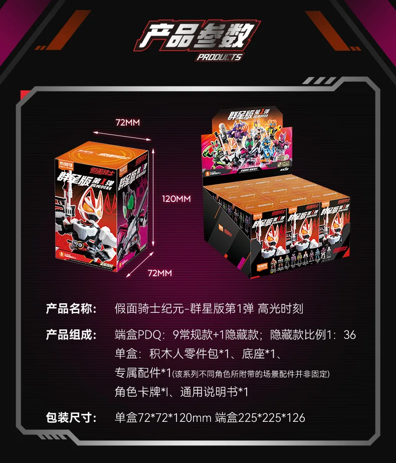 End box PDQ: 9 regular version+1 hidden version: hidden version ratio 1:36 Single box: Building block human parts package * 1, base * 1, exclusive accessories * 1 (scene accessories for different characters in this series are not fixed) Character card * 1, General manual * 1