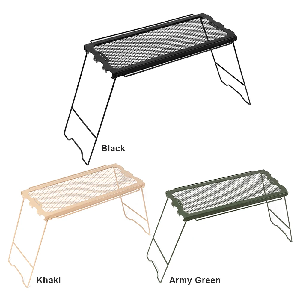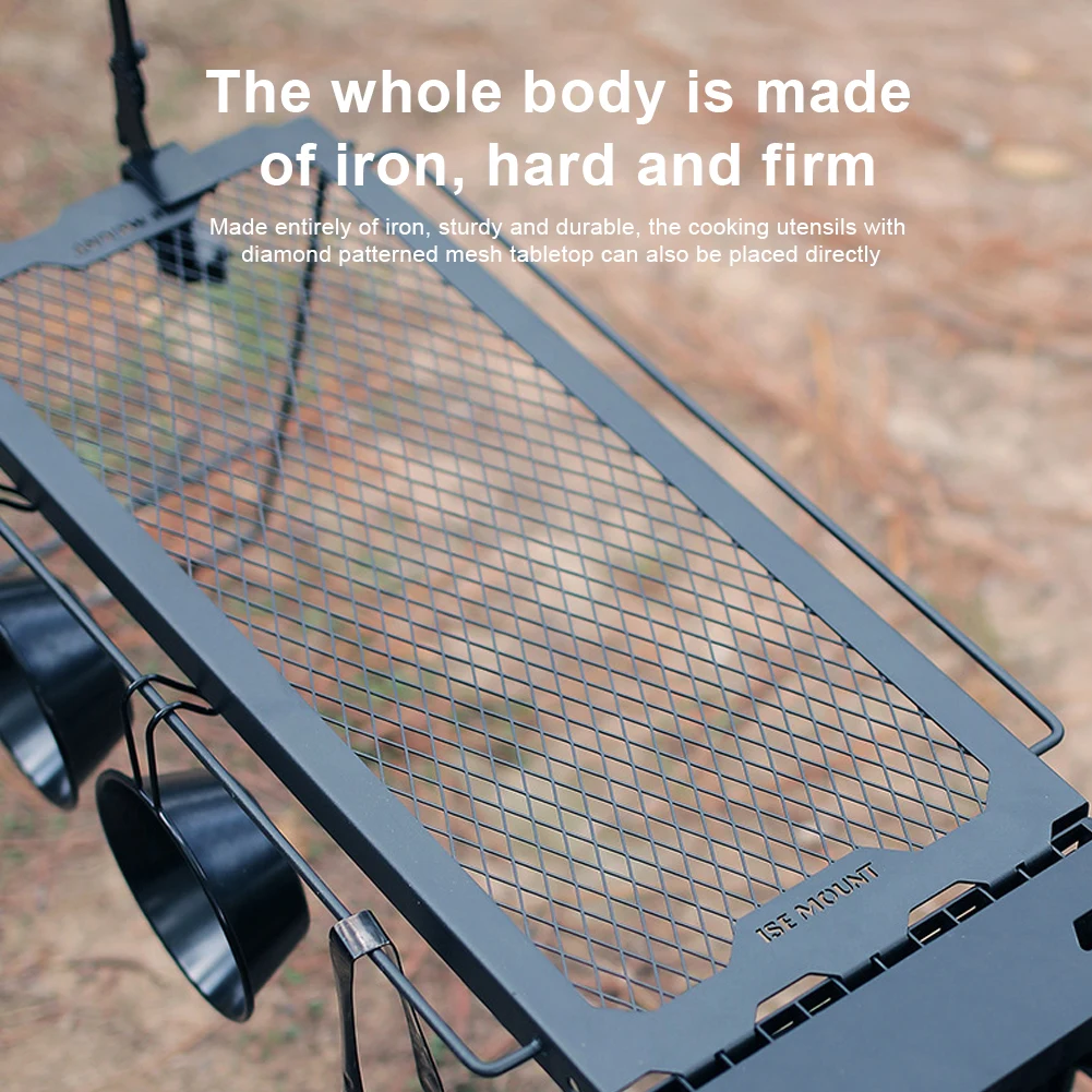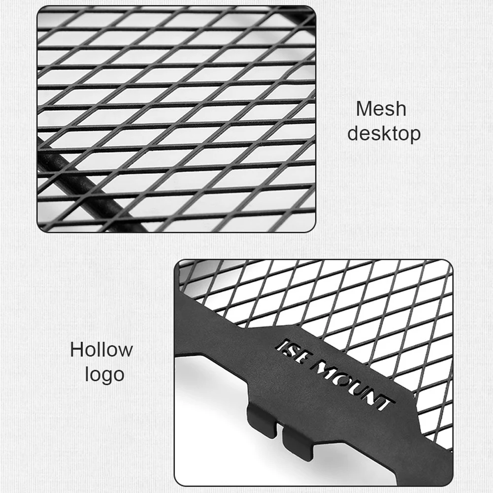 1. Robust Iron Build: Crafted entirely from iron, this folding grid table is designed to withstand heavy use. The diamond-patterned mesh tabletop can directly accommodate cooking utensils, making it perfect for outdoor culinary activities.
