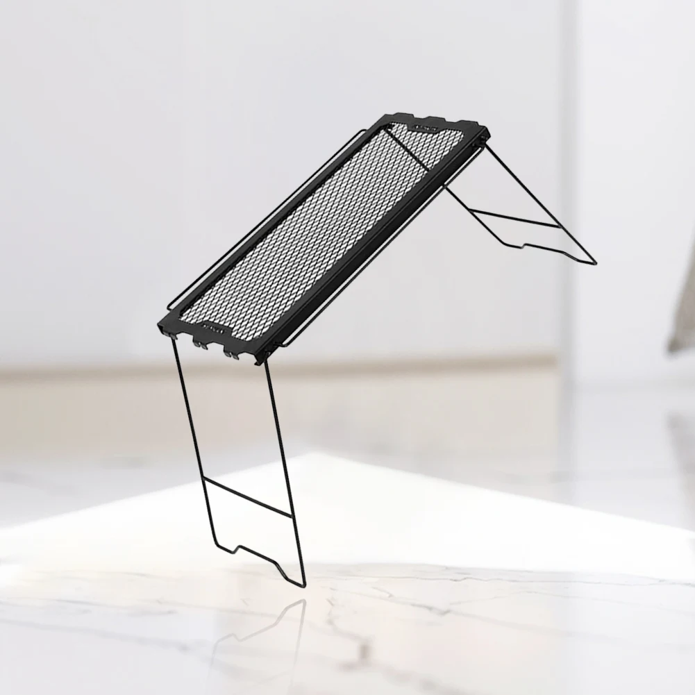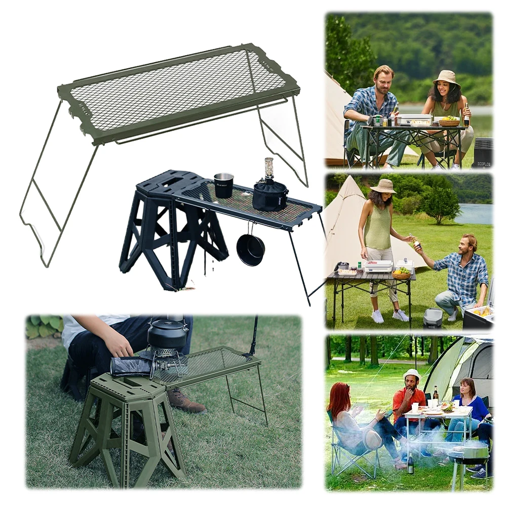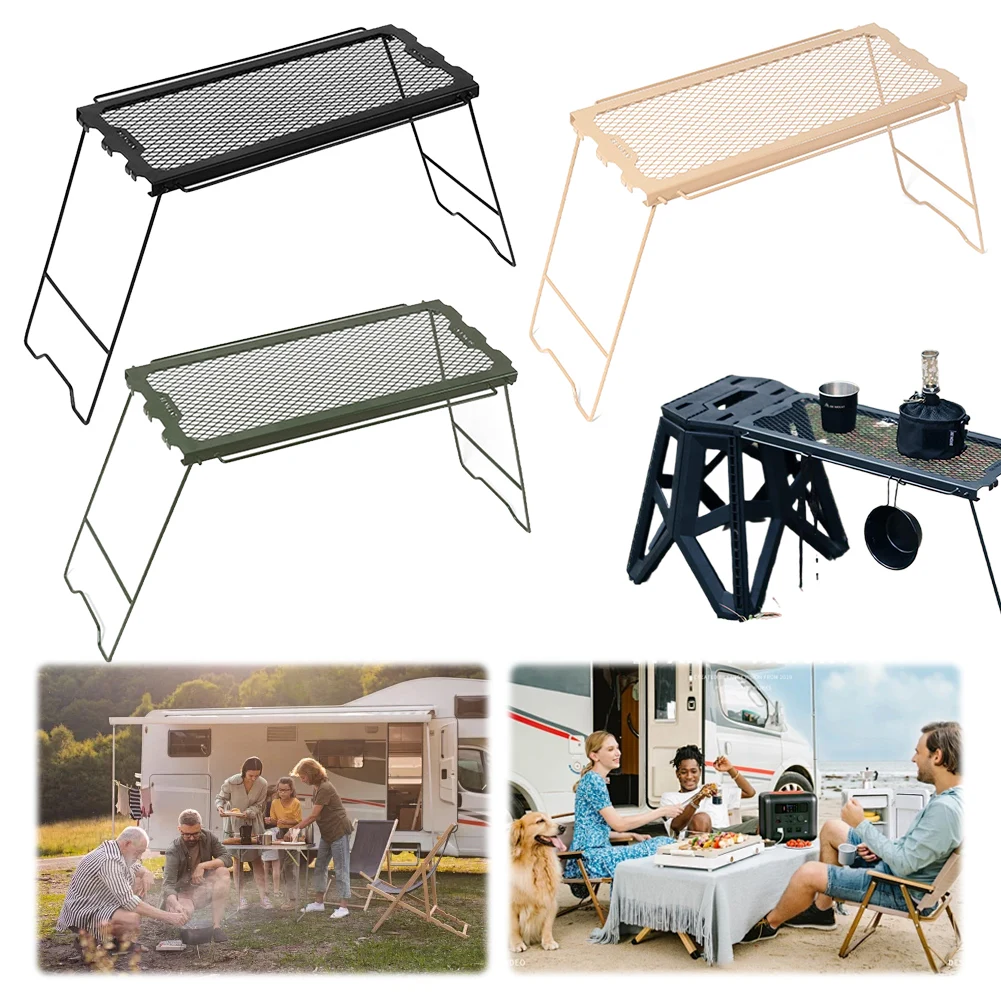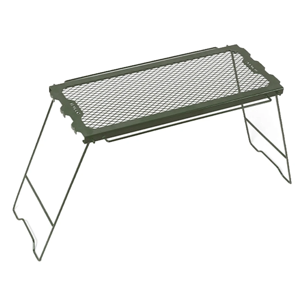 1. Robust Iron Build: Crafted entirely from iron, this folding grid table is designed to withstand heavy use. The diamond-patterned mesh tabletop can directly accommodate cooking utensils, making it perfect for outdoor culinary activities.