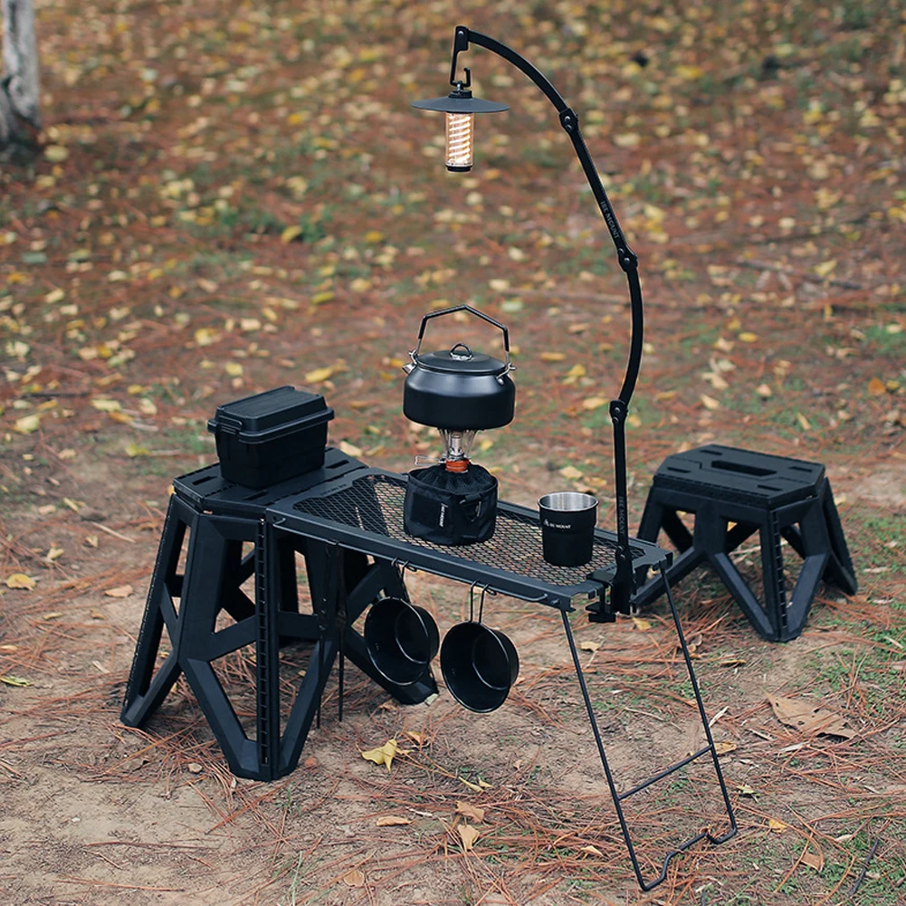 3. Easy Installation: Setting up this side hanging table is a breeze; simply align the table's edge clasps with the grooves on the folding stool to secure it in place. This hassle-free mechanism ensures stability and quick assembly for outdoor adventures.