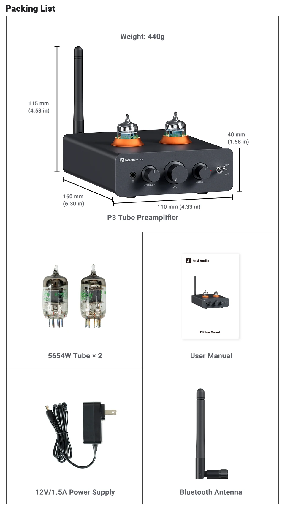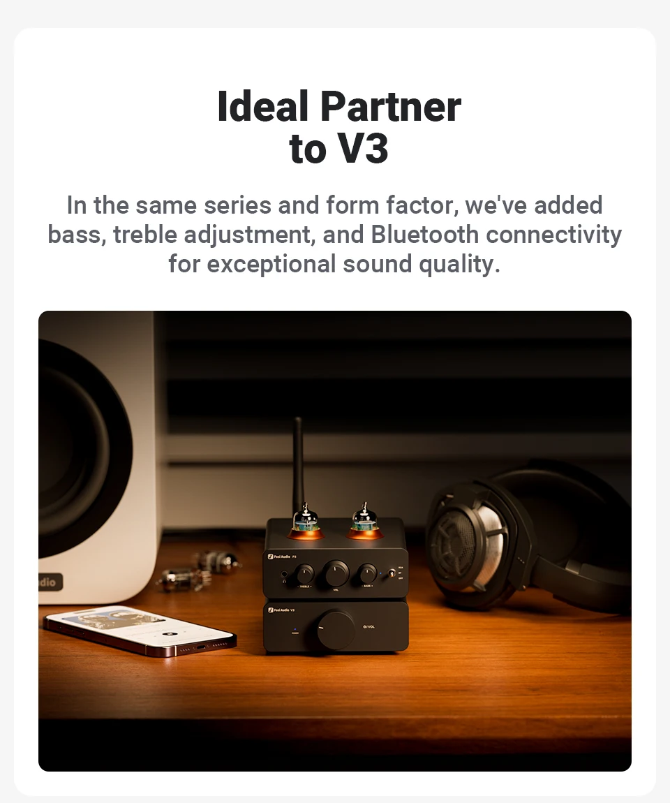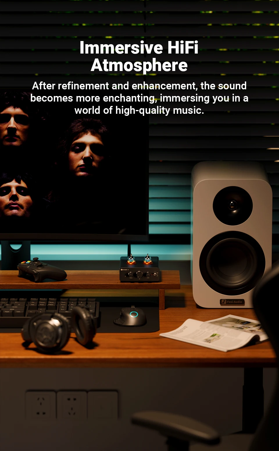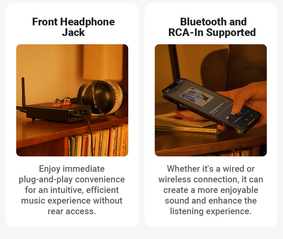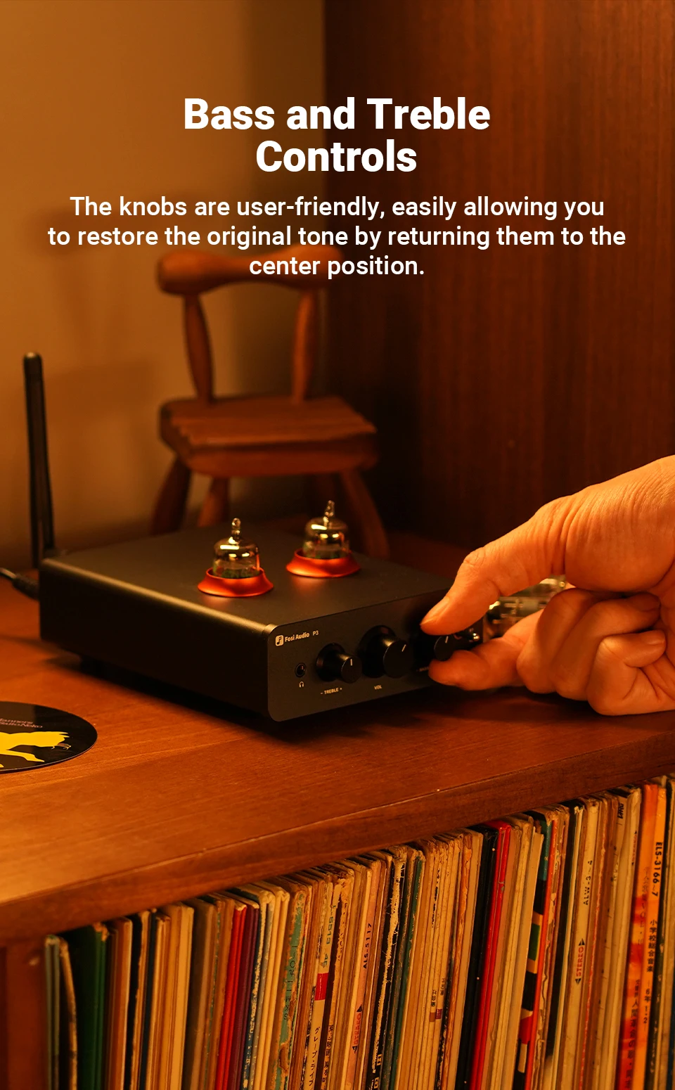 True Tube Amplification: The preamp circuit elevates the voltage to 54V, ensuring the tubes work to their full potential, delivering a warm and rich experience. The unique preamplification technology delivers pure audio signals, faithfully reproducing crisp high tones, full midrange richness, and deep, rhythmic bass.