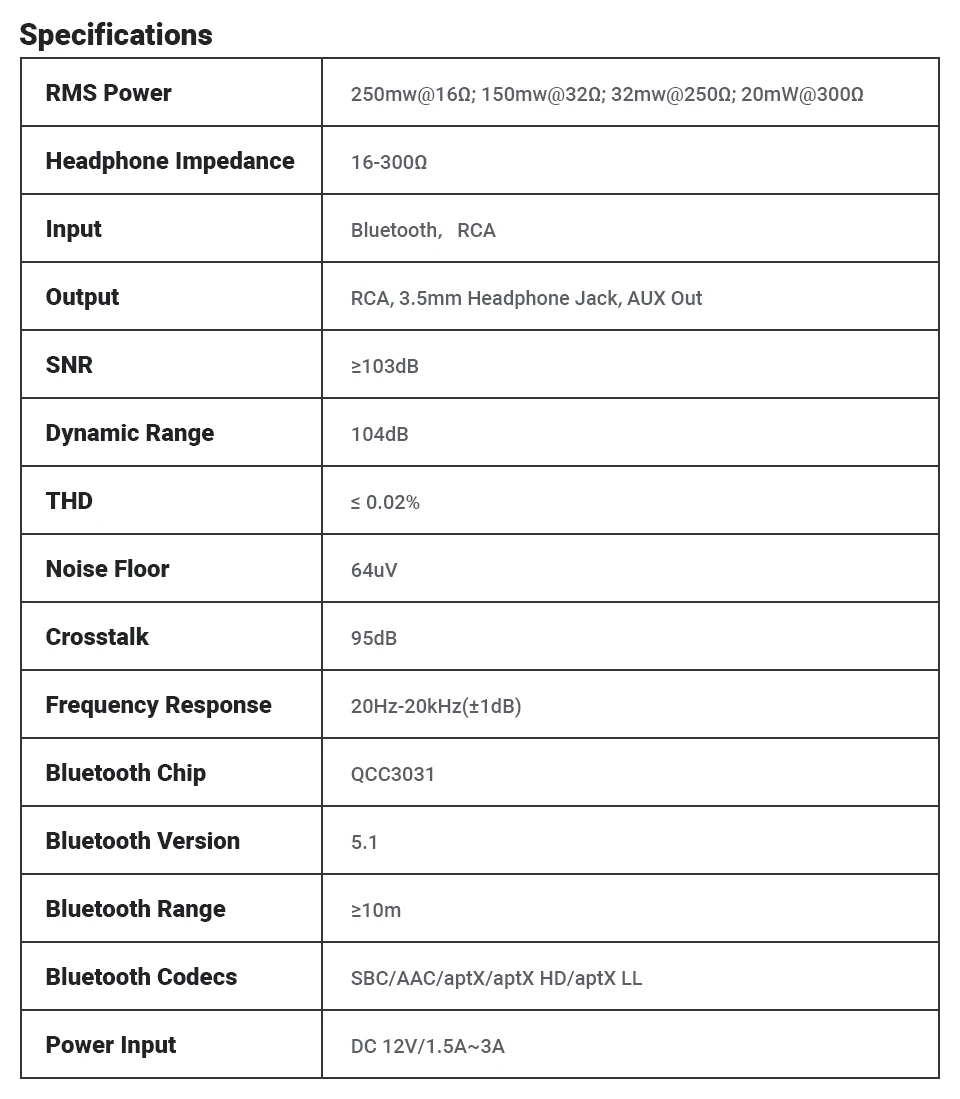 Versatile Connectivities: The P3 provides Bluetooth/RCA inputs and RCA/AUX OUT/3.5mm headphone outputs. It can help create a 2.1-channel audio system by connecting active speakers/an amplifier and a subwoofer. As a headphone amplifier, it supports headphones with impedance ranging from 16 to 300.