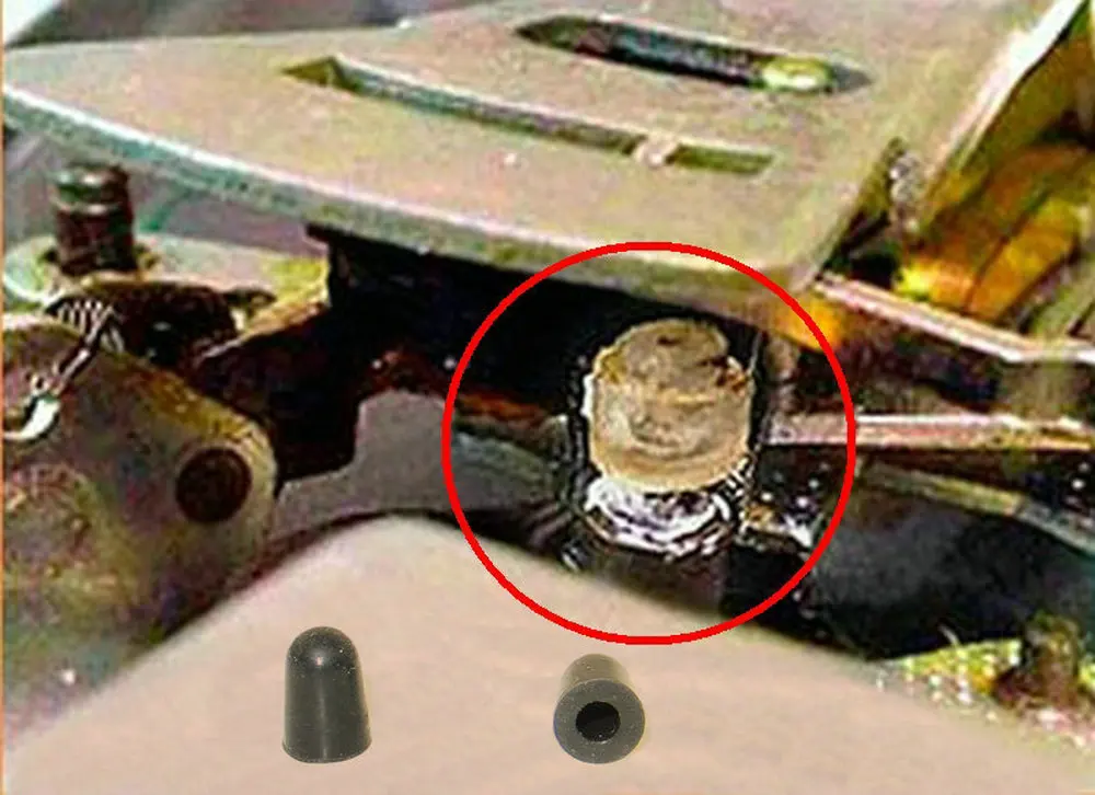 Note the gap between the bottom of the Steuerpimpel Glider Pad and the brass looking sleeve. The silver colored stem or post between these parts moves up and down with the mechanism to create the Start and Stop functions. That 1/8" travel (approx.) is permitted by this properly sized Steuerpimpel Glider Pad.