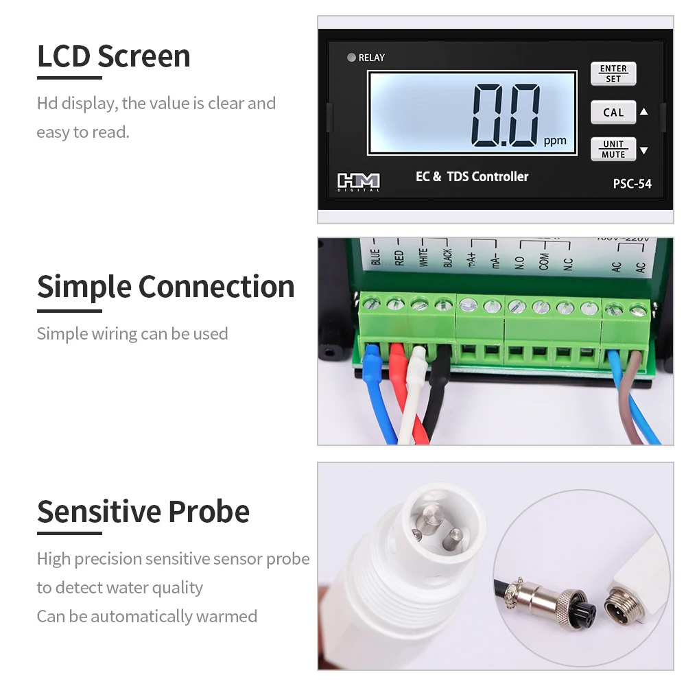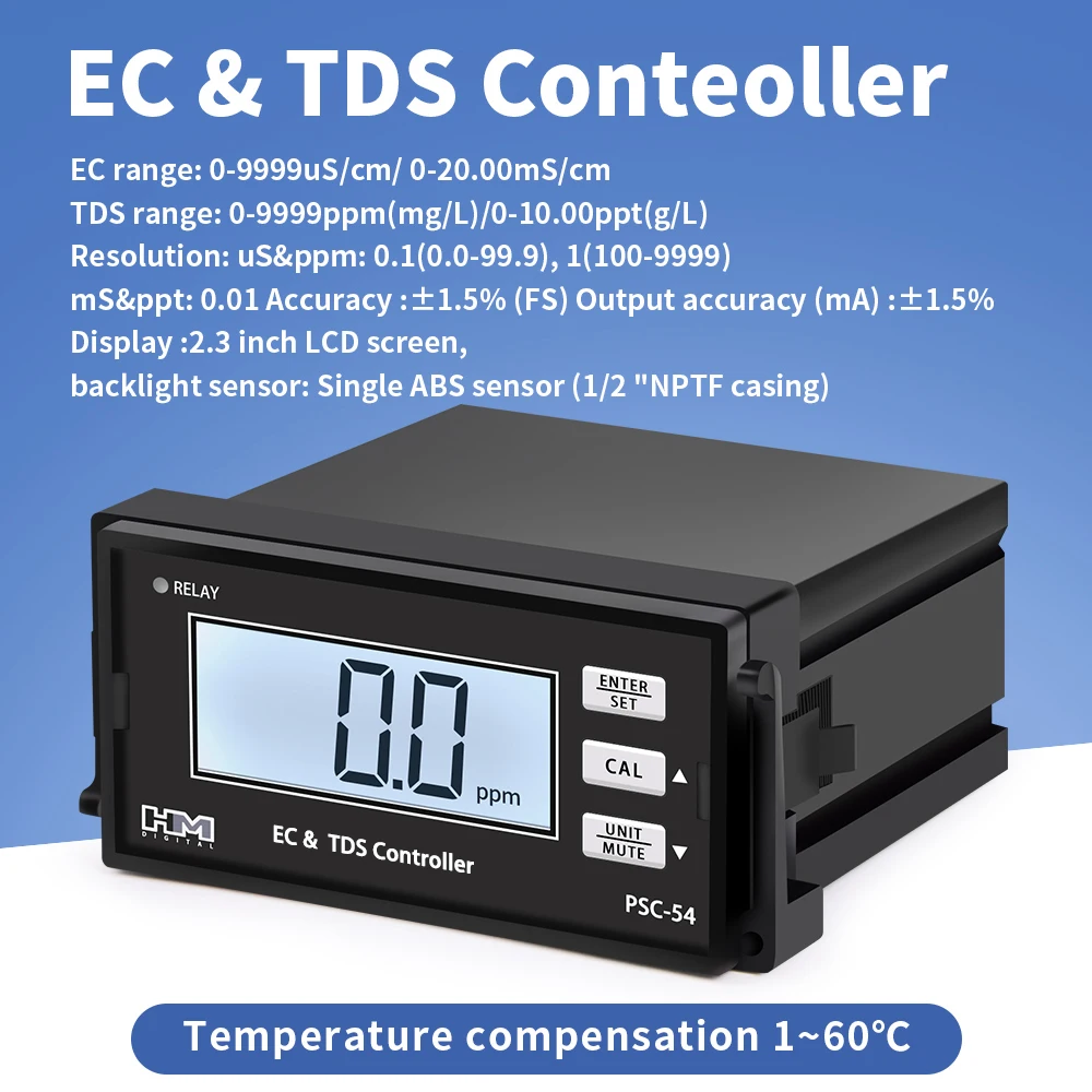PCS50 Electrical Conductivity Meter Online TDS EC Controller Industrial Water Monitor High Sensitivity Electrode 4~20mA Output