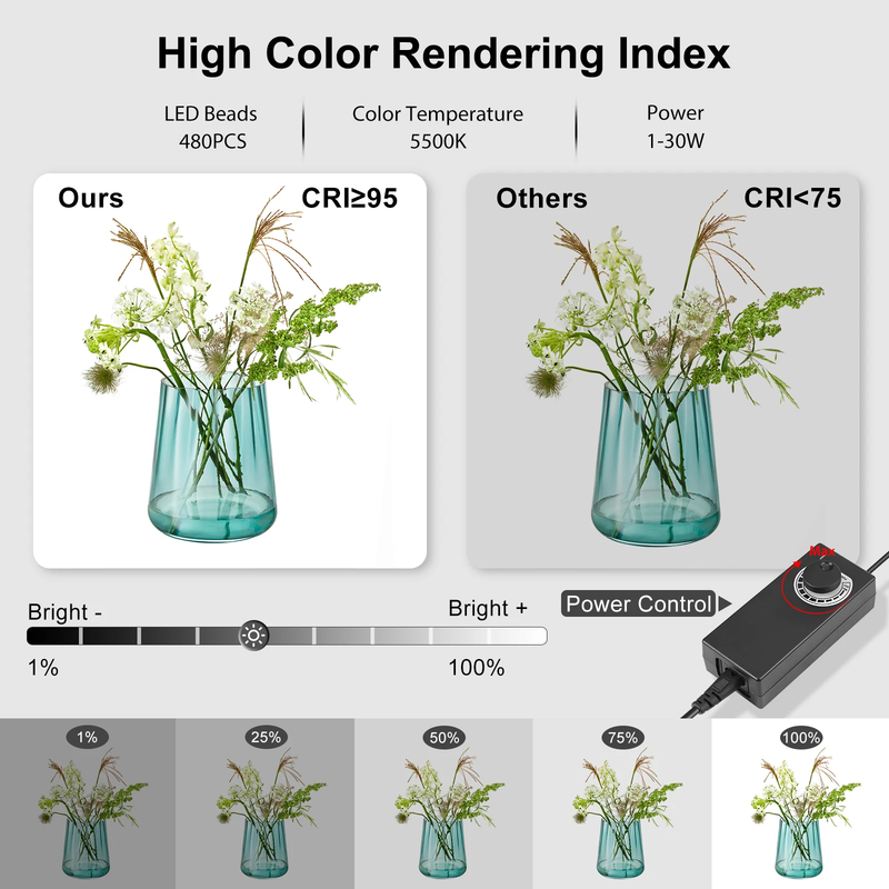 3. [High CRI]The display index of the light panel is CRI95, and the color rendering index (CRI) refers to the level of the light source's ability to restore the visual perception of the object to the sun. The higher the color rendering, the stronger the ability to restore the color of the object, and the easier it is to distinguish the color of the object with the naked eye.