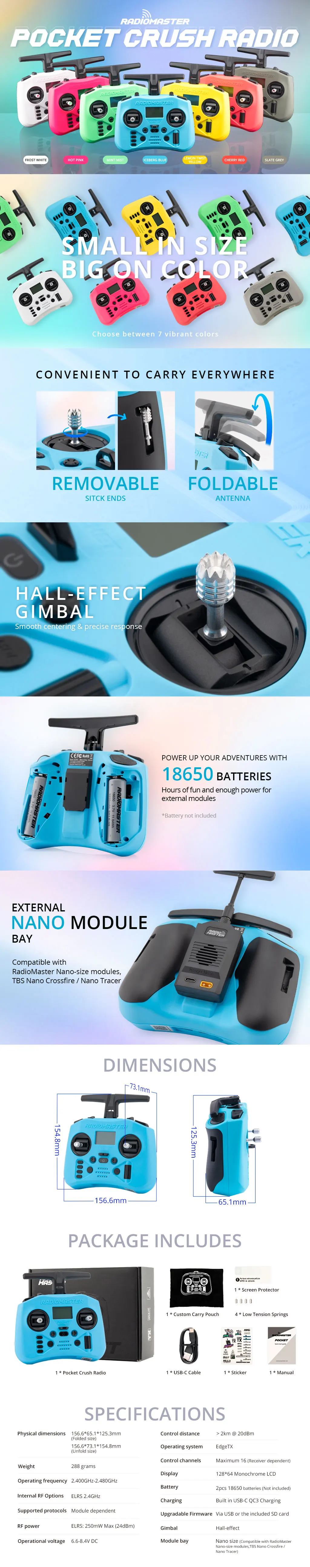 Radiomaster is excited to introduce the new Pocket Crush! Compact, affordable, and available in seven stunning colors'