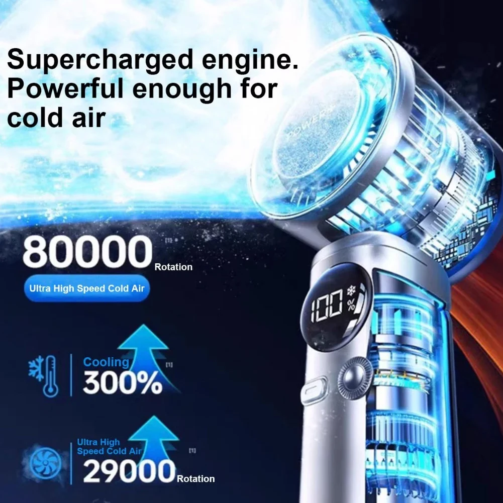 Portable Hand Held Personal Turbo Fan 100 Gear Speed Wind USB Rechargeable High Speed Cooling Fan Digital Power & Speed Display Portable Hand Fan for Travel Camping Outdoor & Indoor