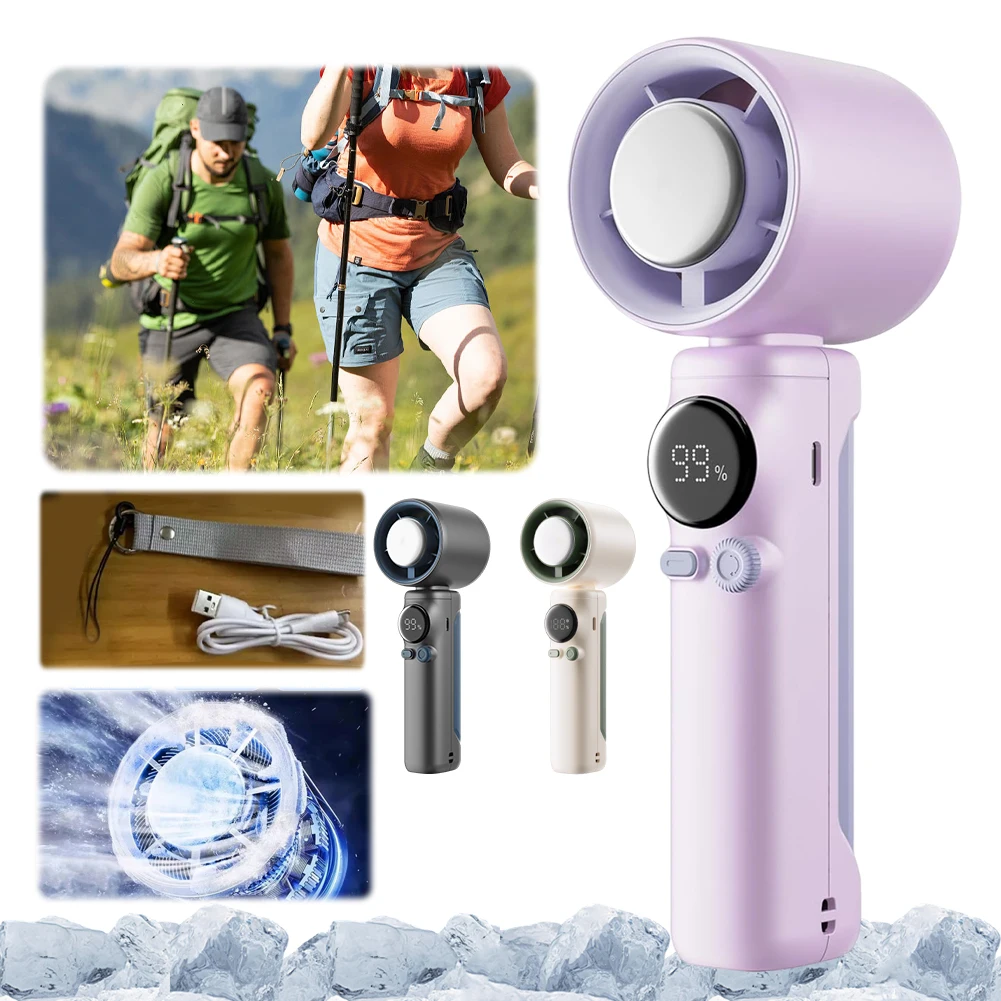 3.Digital LED Display: Easily view remaining battery life and wind speed levels on this portable hand fan. Adjust fan speeds from level 1 to 100 using the roller wheel for personalized comfort.