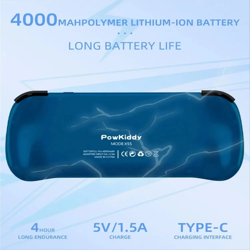 The most cost-effective POWKIDDY X55, 5.5 inch IPS screen and 1280*720 resolution, feel, experience is very good! You will enjoy an immersive gaming experience like no other. Our store launches two kinds of 512G large memory game cards, 512G 80K retro mini games/512G 450 PSP games, you can play free~