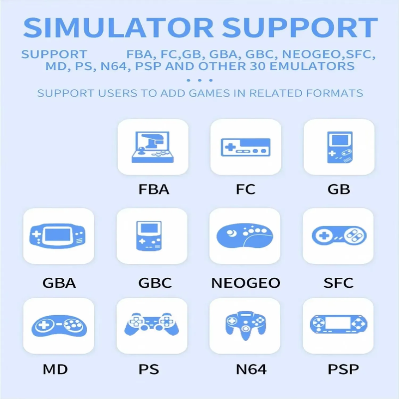 SUPPORT CPS,FBA,FC,GB,GBA,GBC,NEOGEO,SFC,MD,PS,N64,PSP AND OTHER 30 EMULATORS