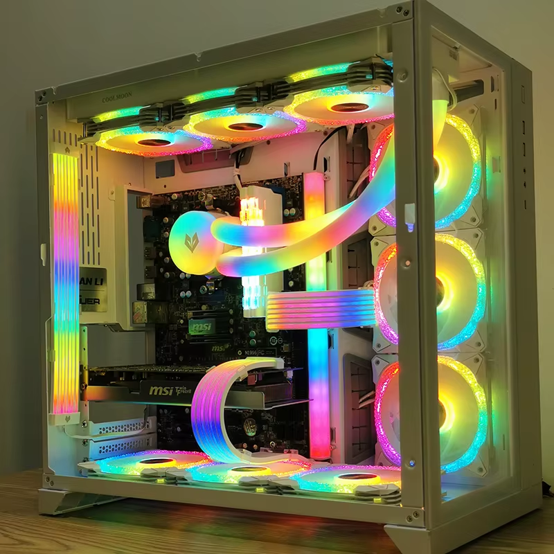 | COOLMOON AOSOR Flexible Light Bar PC Backlight Flexible Lamp Strip 5V ARGB Aura Sync Flexible LED Light Bendable DIY for Chassis Feature: 1. High-quality high-density lamp beads: The lamp board is built with 44pcs high-quality high-brightness lamp beads in double rows, which makes the lamp board bright and full of color, which is pleasing to the eye. The light effect does not reveal the lamp beads, and the high brightness has no dark spots. 2. Bendable & flexible/cool luminous stripes with a sense of technology: High-quality silicone material, with strong light guide, soft texture, flexible and durable, can be bent 360, to meet DIY modeling requirements. Cool multi-stripe light-emitting design, the light is soft, full and translucent, showing multi-track flowing light effect, more technological sense. 3. Free DIY for multiple application scenarios: AL300 flexible light board can be used to decorate 24Pin motherboard power supply lines, 8pin graphics power supply lines and other hardware equipment power supply lines, can be straightened as a light board, and can also be used as a chassis light bar. 4. 5V ARGB Aura Sync: Support the second generation addressable ARGB interface of motherboards such as for ASUS / MSI / Gigabyte / ASRock, etc., control the lighting through software, and programmatically customize 16.8 million colors. 5. Multi-interface expansion is more convenient: 5V 3PIN*2+4PIN, lengthened wire makes wiring more worry-free, simple white is the current mainstream color, multi-interface makes connection and installation and expansion more convenient, and greatly improves product compatibility; lengthened wire , to support the backline. It comes with instructions and installation accessories, which can be fixed with cable ties or double-sided tape, making installation and use easier. Built-in binding tape, without extension cable, directly tied to graphics card cable/motherboard cable, widely used. Specification: Certification: CE Origin: Mainland China Type: Sync Motherboard Cable Model Number: Flexible Strip Light Package: Yes Brand: COOLMOON AOSOR Model: AL300 Material: Silicone Lamp beads: 44pcs Voltage: 5V DC Current: 0.7A10% Power: 3.5W10% Interface: 5V 3PIN*2+4PIN (5V 3-pin female plug into the motherboard 5V ARGB Aura Sync interface, 5V 3-pin male connect with other 5 V ARGB products in series to light up the light; insulation protection cap - pin interface is not used, Cover the cap to prevent short circuit; small 4PIN interface - dedicated interface for COOLMOON brand controller (when the motherboard does not support 5V ARGB, you can purchase the Coolmoon controller to use with it) Wire length: 600+10%mm Light board: 300x41x12mm/11.81x1.61x0.47in Total weight: 0.23kg (including packaging) Installation method: (1): Tie fixing The AL300 flexible light board can be installed on the graphics card and the power supply line of the motherboard by fixing it with a tie. Installation method: A. Insert the cable tie from a hole on the back of the transparent buckle, B. Pass the cable tie through another hole, fasten the cable tie to the graphics card and the power supply cable of the motherboard, then tighten the cable tie and cut it off Just the excess (2): Double-sided tape fixed By fixing with double-sided tape, the AL300 flexible light board can be pasted on the free plane of the chassis for use. Installation method: A. Paste the double-sided tape on the transparent buckle, B. Tear off the protective film on the surface of the double-sided tape, and then paste and fix the AL300 soft light board to a suitable position on the chassis. Note: Due to the different monitor and light effect, the actual color of the item might be slightly different from the color showed on the pictures. Thank you! Please allow 1-2cm measuring deviation due to manual measurement. 1 X Light Board 4 X Double Sided Tapes 1 X Instruction 3 X Transparent Snaps 4 X Cable Ties |