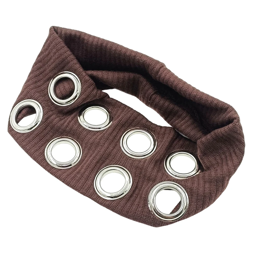 Hollowed Out Headband Fashion Breathable Fabric Metal Eyelets Headgear Non Slip Wide Stretchy Headband for Women Girls