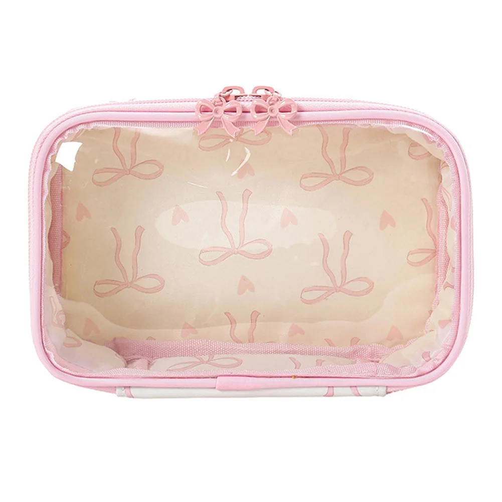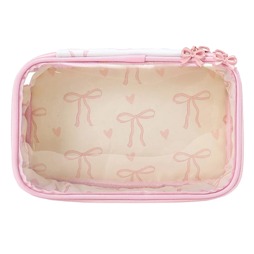 PVC Bowknot Makeup Bag Large Capacity Cute Toiletry Handbag Transparent Travel W