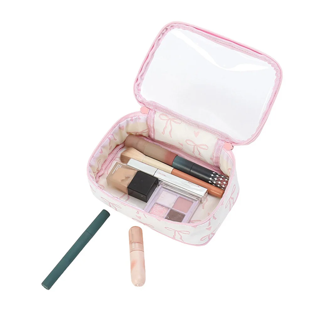 3.Chic Design: Featuring lovely bowknot patterns with cute graphics, this cute toiletry handbag adds a fresh and fashionable touch to your style.
