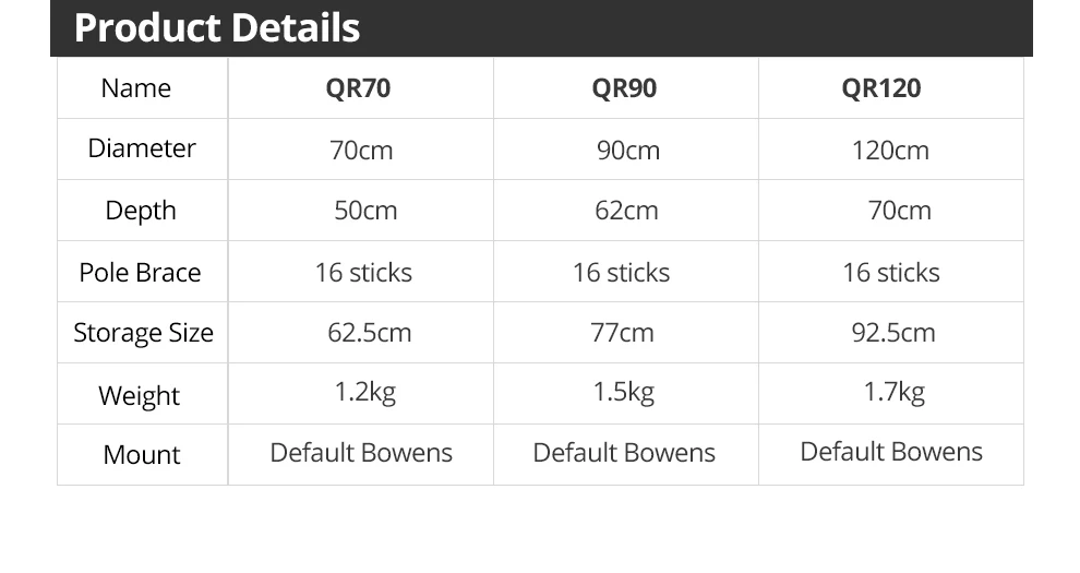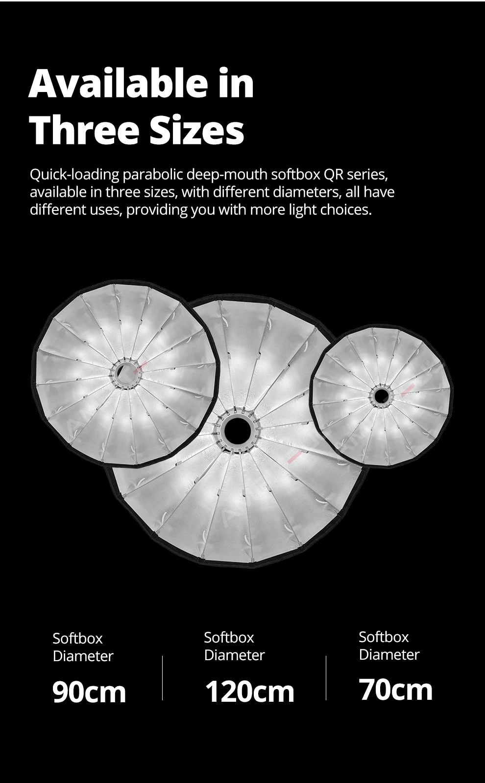 QR-P70 70CM QR-P90 90CM QR-P120 12CM Quickly Release Parabolic Deep Softbox for