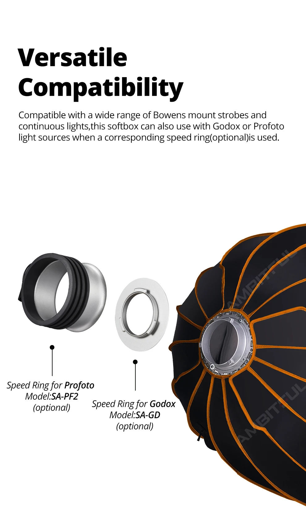 Great Compatibility: Adopting Bowens-mount, compatible with all kinds of Bowens-mount flashes and video light;