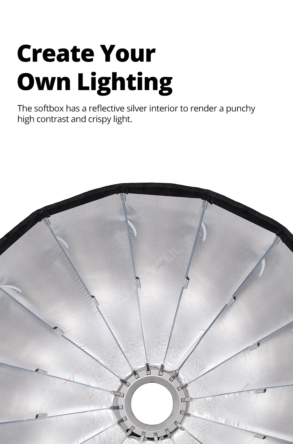 Reflective Silver Interior: This softbox has a reflective silver interior to render a punchy high contrast and crispy light