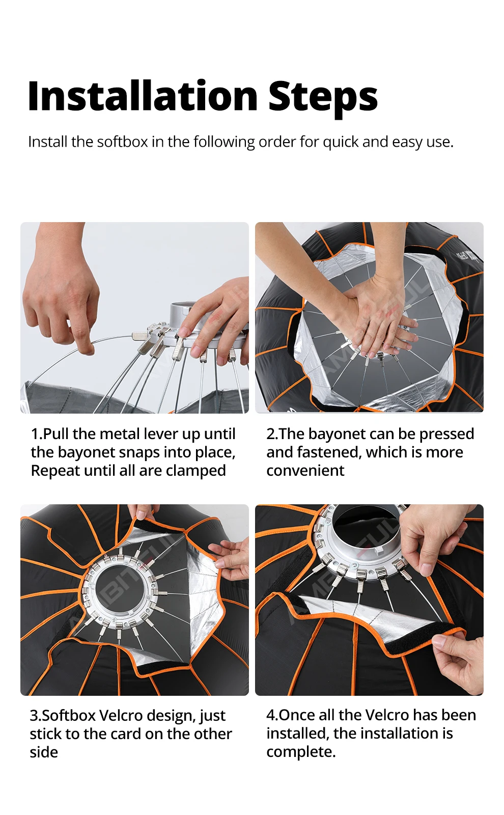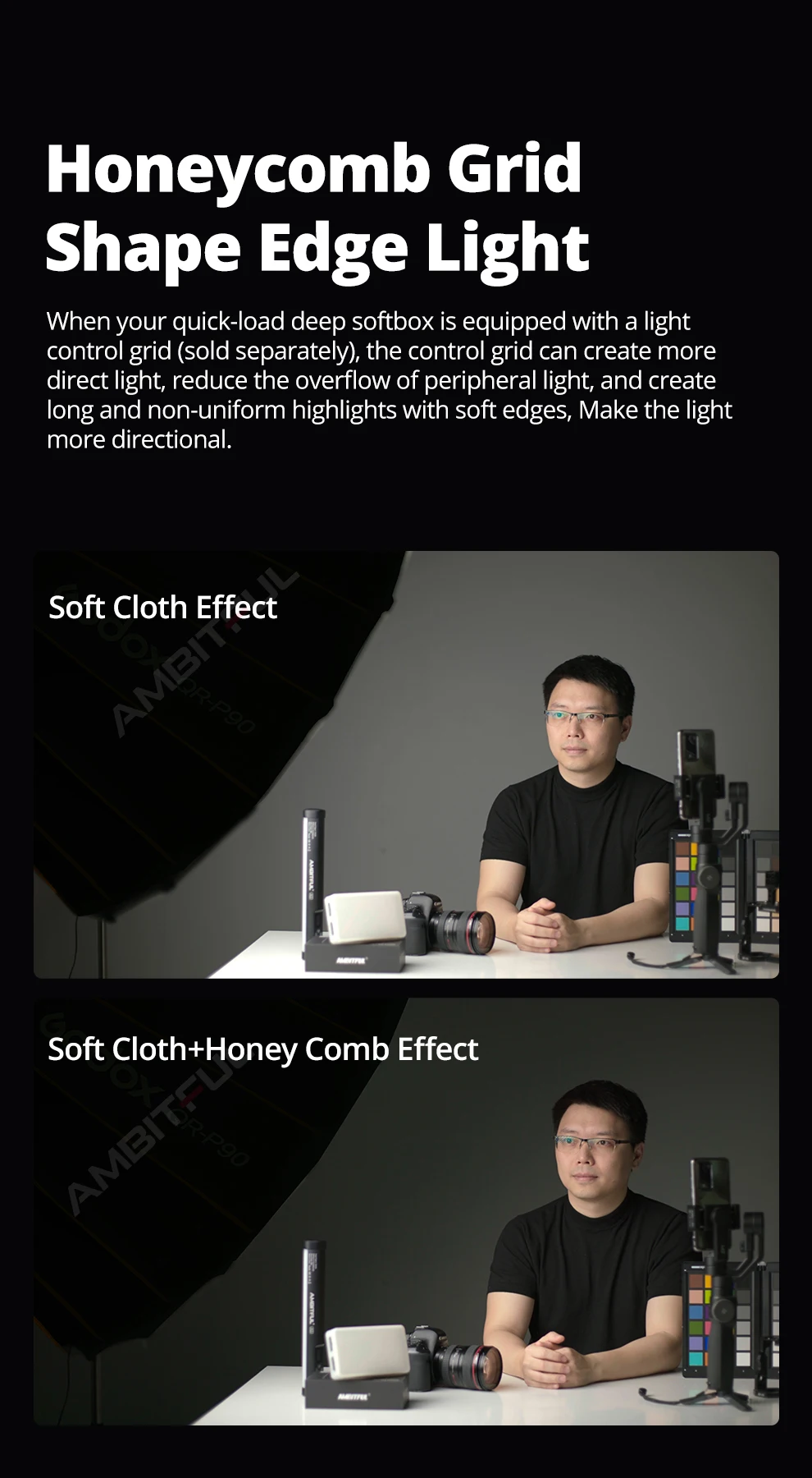 Deep Parabolic Box Design: Work like an oversize reflector, which is good for light concentration and gaining light effects with soft and high saturation. Compared with other similar products: lighter and more smooth