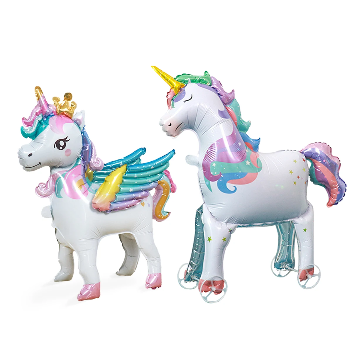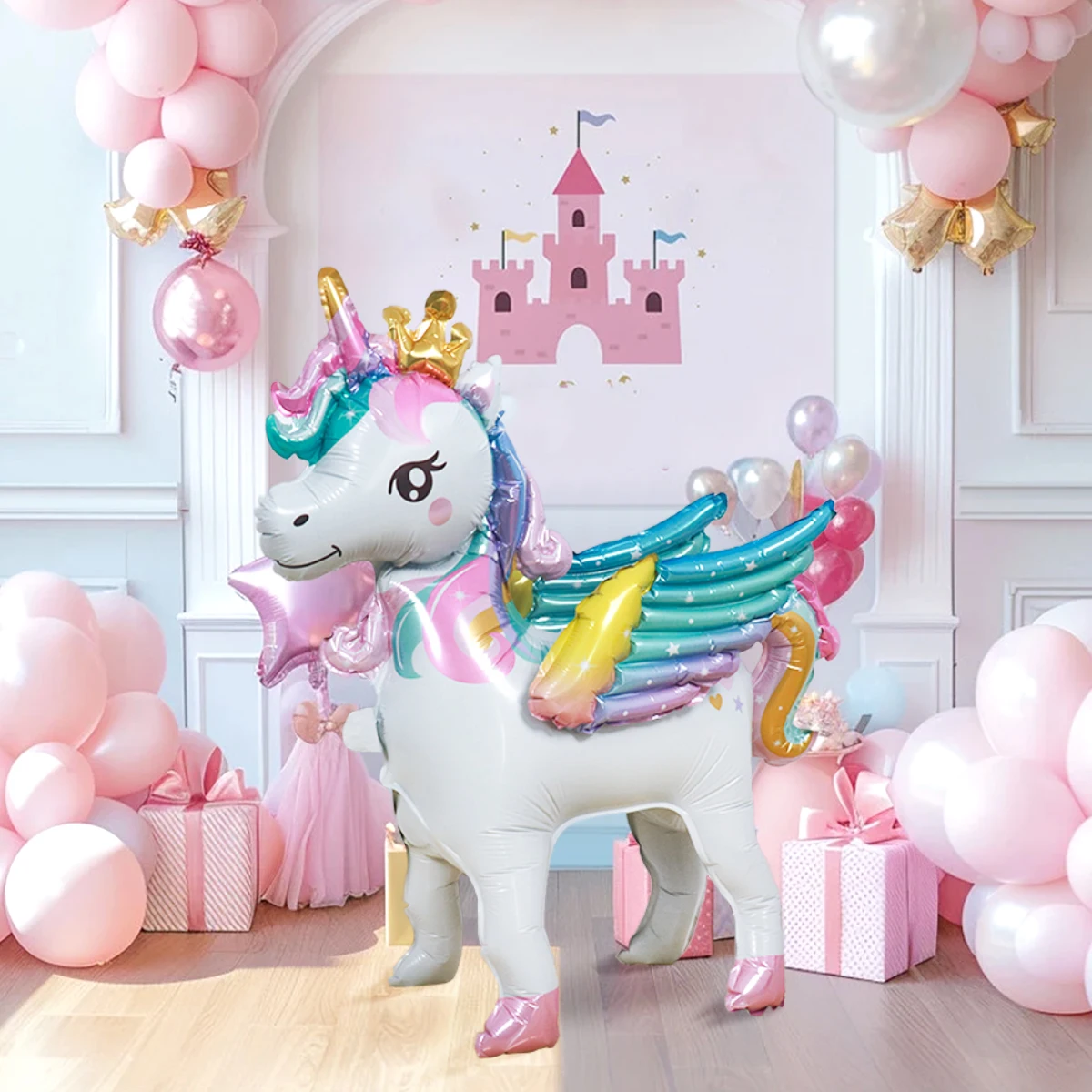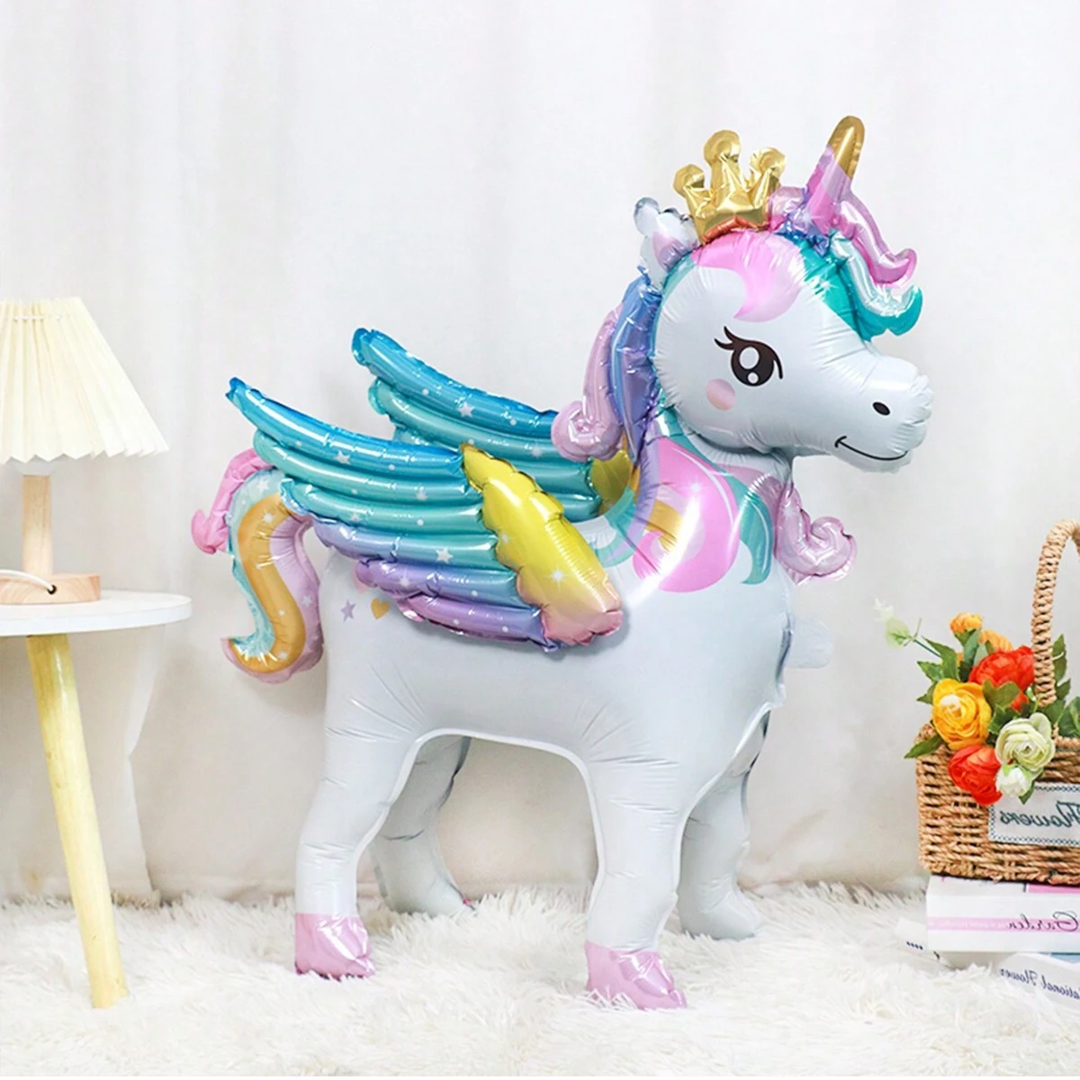 Rainbow Unicorn with Wings and Wheels Standing Balloon, Unicorn Theme, Birthday