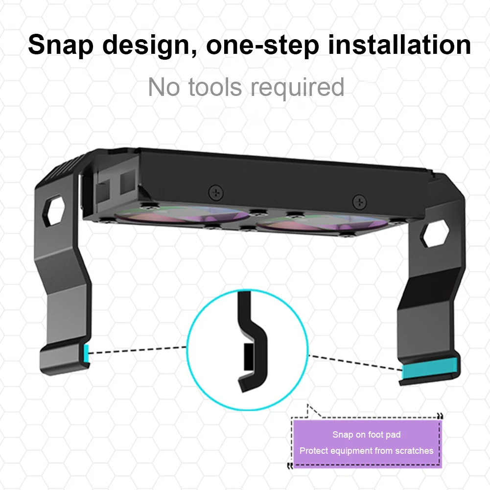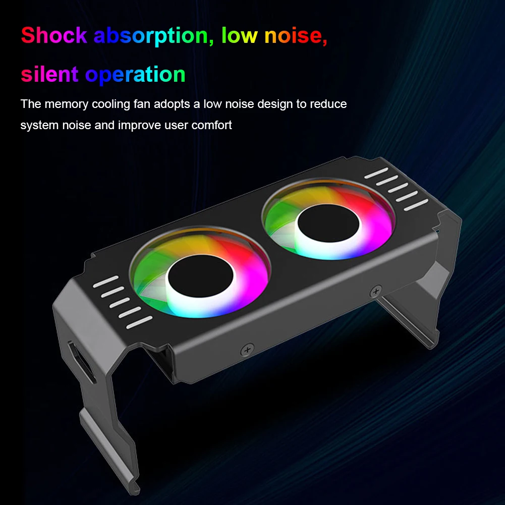 | RAM Memory-Chip Heatsink 4Pin PWM/5V 3Pin ARGB PC Memory Cooling Radiator 1000-4500+RPM with Dual 120mm Fan for DDR4 DDR5 Cooling Feature: 1. ARGB Sync Lighting: RAM cooler enjoy a stunning programming experience with 16.8 million customizable colors. Supports connection to leading motherboard brands such as for ASUS, MSI, Gigabyte, and ASRock via the 5V 3-pin ARGB interface. Achieve software-controlled synchronized lighting effects, allowing for personalized customization with 16.8 million colors (limited to ARGB version). 2. Dual Fan Active Cooling: Equipped with two 120mm fans featuring hydraulic bearings. With a 4-pin PWM/3-pin ARGB interface, this ram cooling fan combines visual appeal (16.8 million colors ARGB) with intelligent temperature control and energy-saving noise reduction capabilities. Efficiently dissipates heat from the motherboard and power supply with high airflow. 3. Silent Operation with Temperature Control: Dual intelligent temperature-controlled PWM ram memory cooler provide efficient cooling while adopting a low-noise design. The fan speed ranges from 1000 to 4500 RPM, effectively avoiding fan resonance and reducing noise, thereby enhancing user comfort during operation. 4. Convenient Snap-on Design: The memory-chip heatsink fan made of aluminum alloy material offers easy installation. Simply secure the fan onto the memory module without the need for any additional tools or skills. 5. Effective Heat Dissipation: The dual-fan of ram radiator configuration ensures rapid heat dissipation from the motherboard and power supply. The liquid bearing technology employed in the fans enhances longevity and reliability, providing efficient cooling performance. Specification: Origin: Mainland China Model Number: D50 Type: Memory Cooler Weight: 180.00 g Material: Aluminum RGB Support: A-RGB Power Interface: 4PIN,5v-3pin ARGB Product color: black, white (optional) Fan speed: 1000-4500+ 10% R.P.M Fan Airflow: 13.5CFM Fan air pressure: 2.3mmH20 Fan noise: 28dB(A) Connection type: 2510-4Pin Bearing Type: Hydraulic Bearing Rated voltage: FAN: DC 12V/L ED: DC 5V Rated current: FAN: 0.25A/ LED: 0.216A Rated power: 8.16w Product interface: FAN 4Pin PWM / LED 3Pin ARGB Product size: 120* 120*25mm/4.76x4.72x0.98inch Product weight: 180 grams Note: 1 x RAM Cooler |