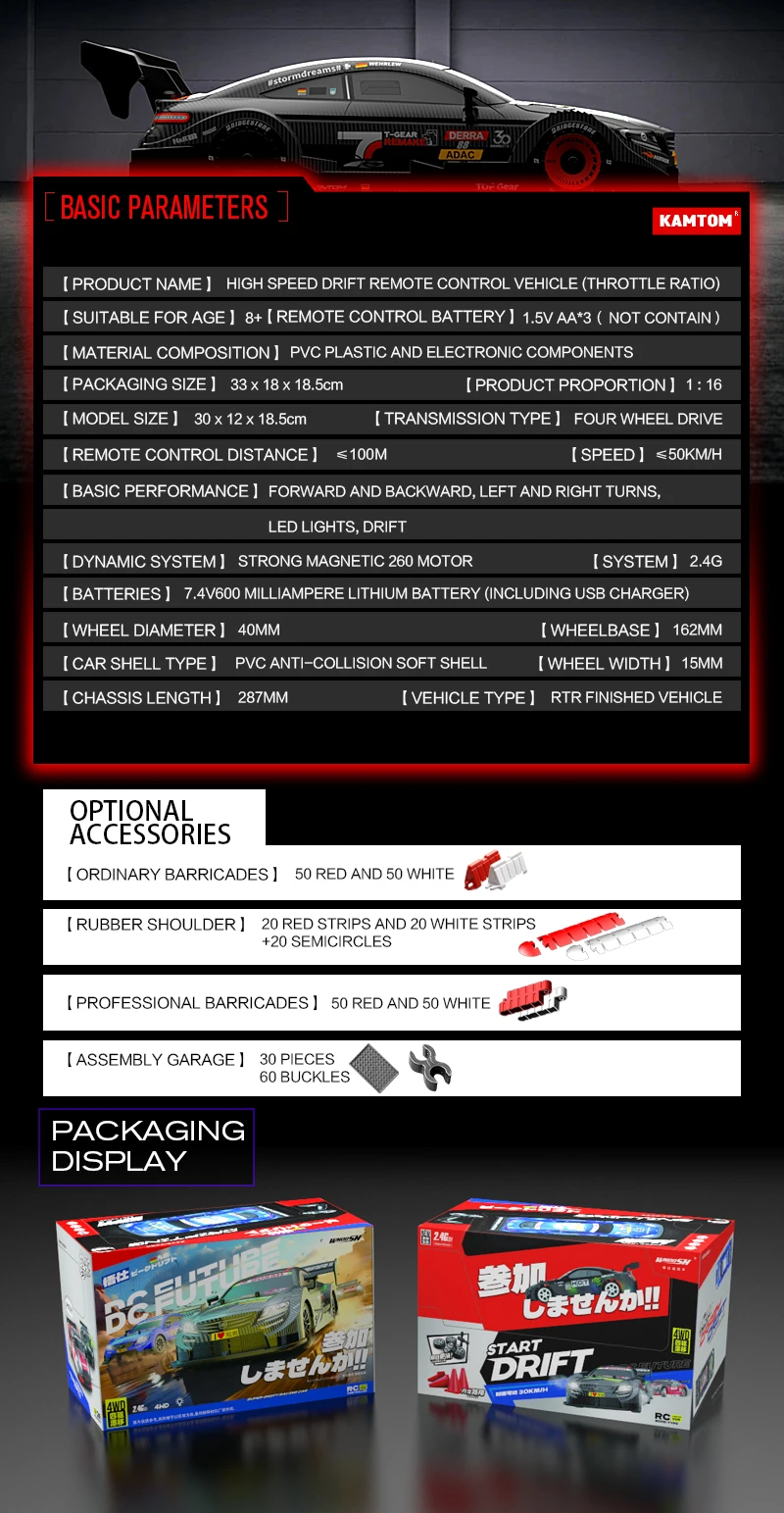 RC 4WD 2.4G Racing Car High Speed Off-Road Remote Control Drift Toys 1:16 with L