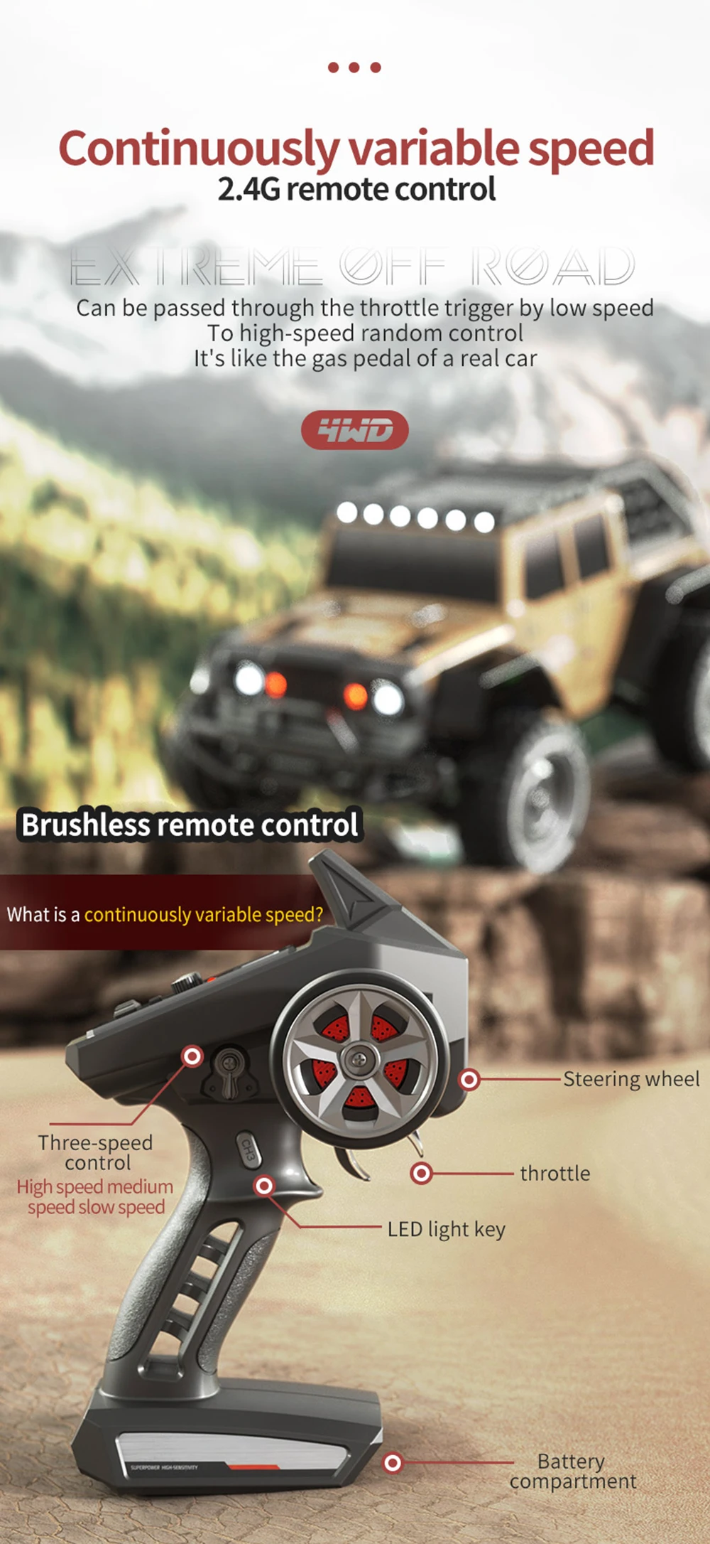 3. This is not an ordinary toy remote control car, because the remote control car is too fast, it is recommended to use remote control car in open areas to avoid bumping into obstacles.