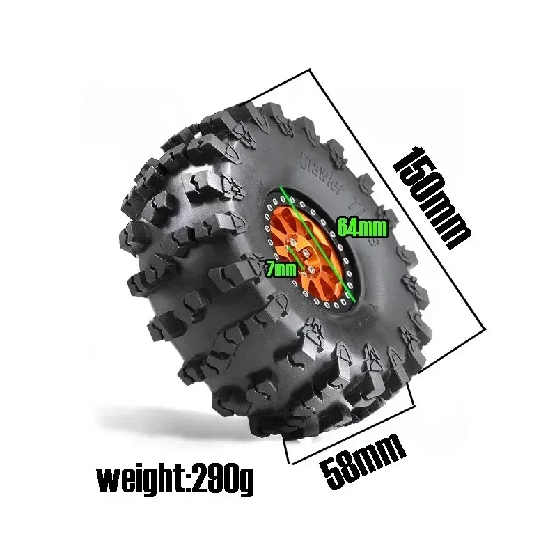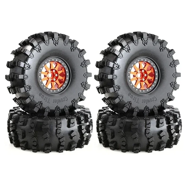 Rc4Pcs 150Mm 2.2'' Metal Beadlock Wheel Rim Tire Set for 1/10 RC Crawler Car Axia