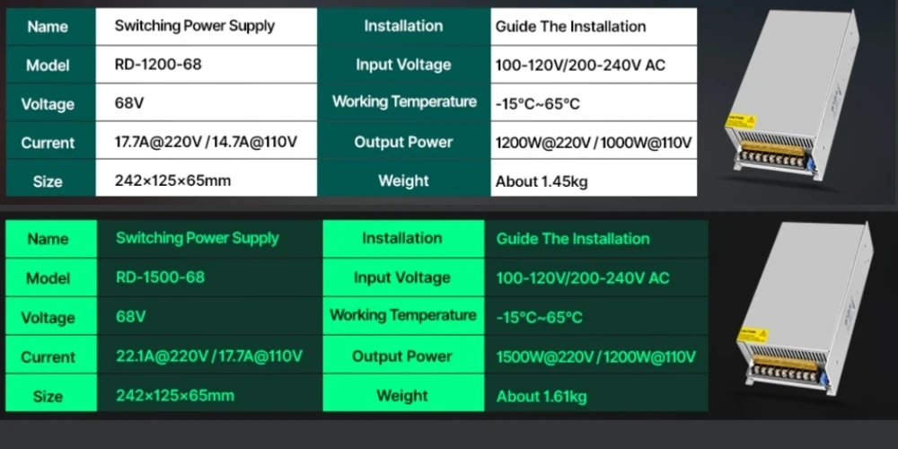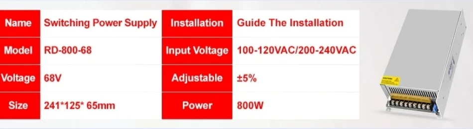 RD Switching Power Supply 68V 1200W SMPS CNC Adjustable Voltage for RD6018 RD601